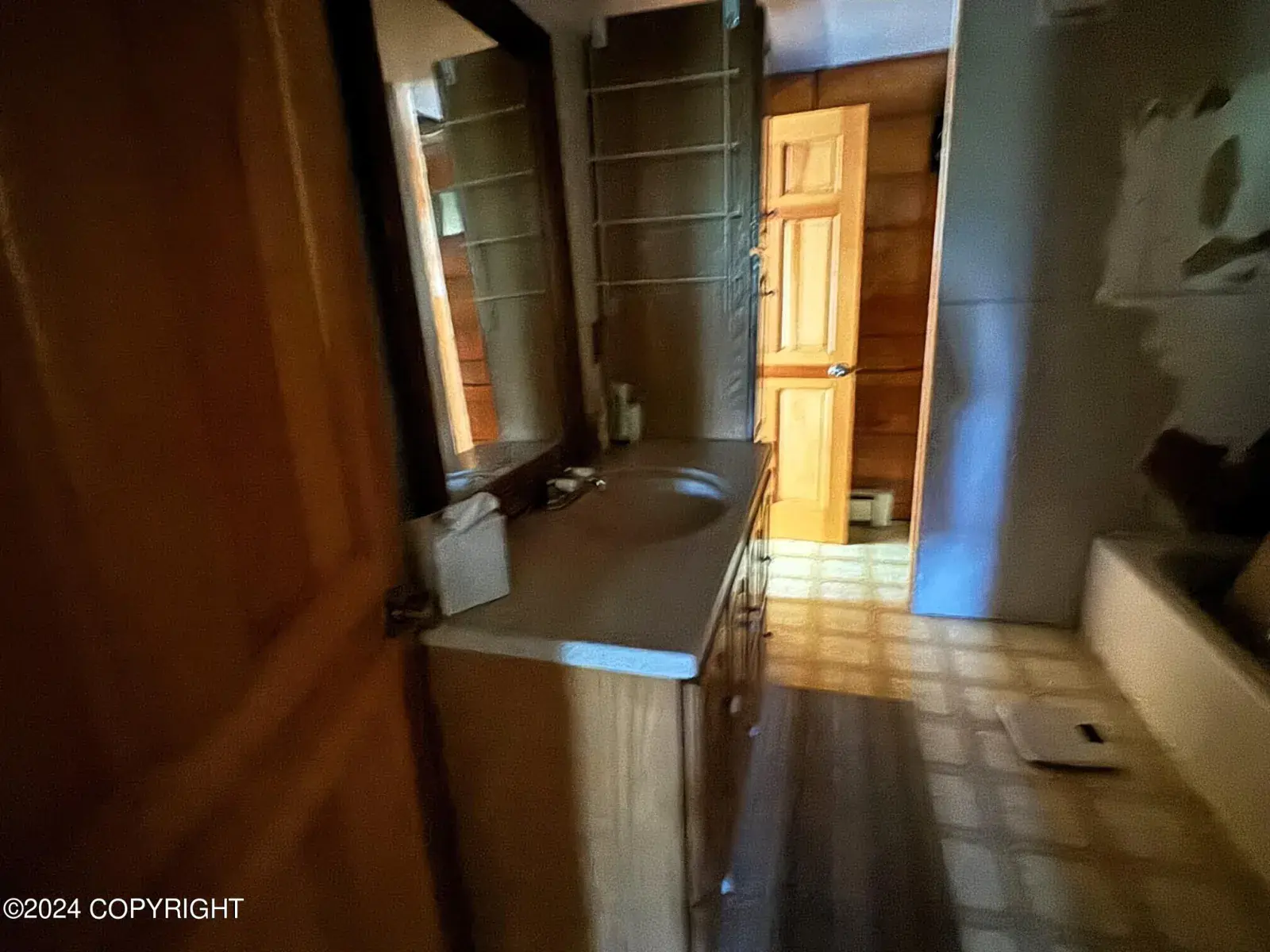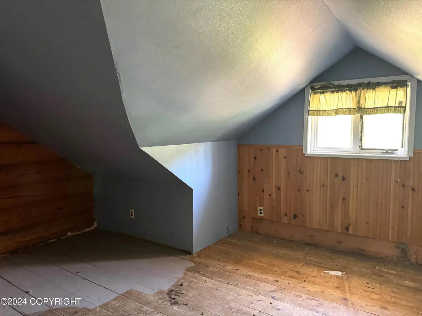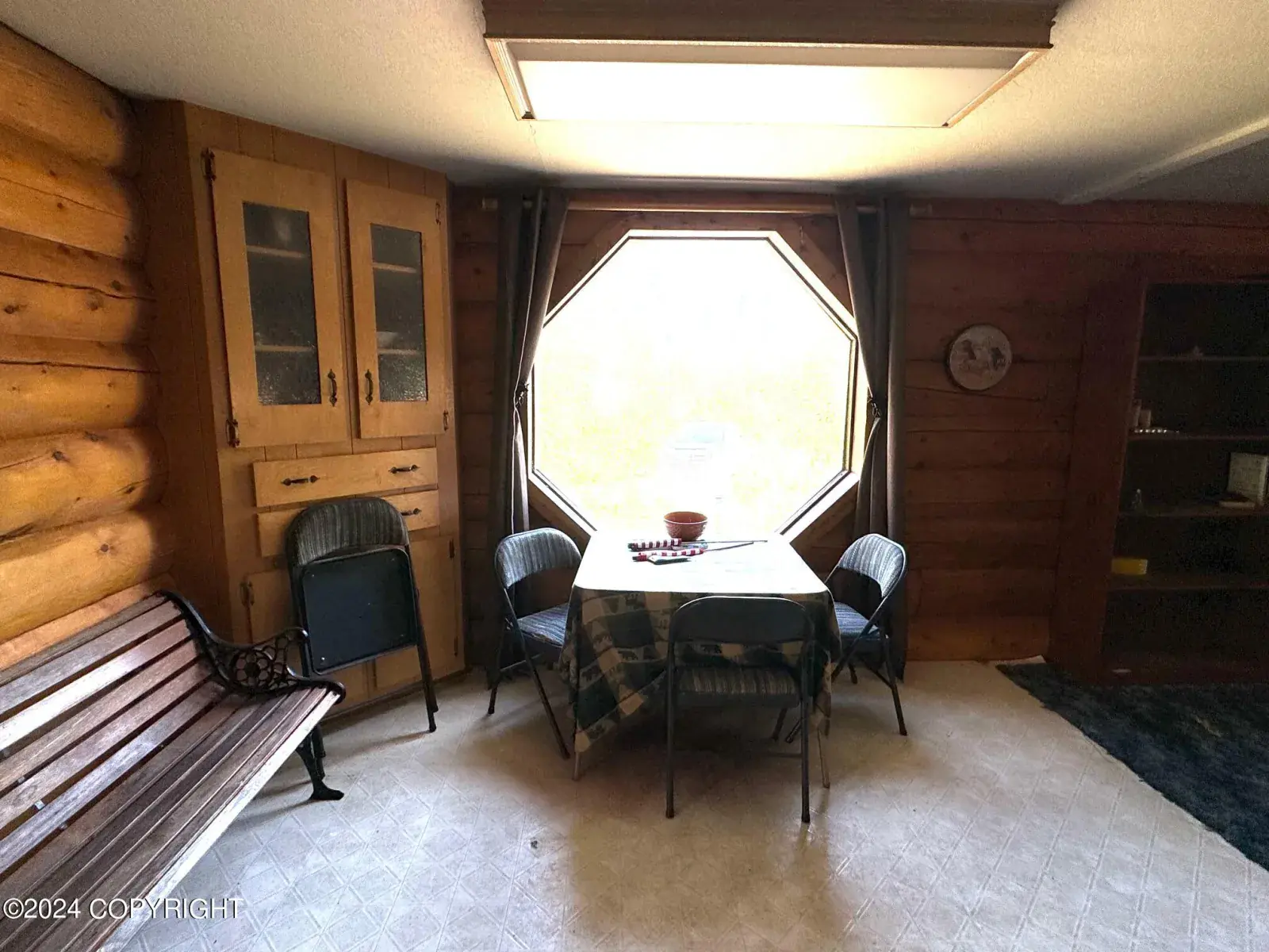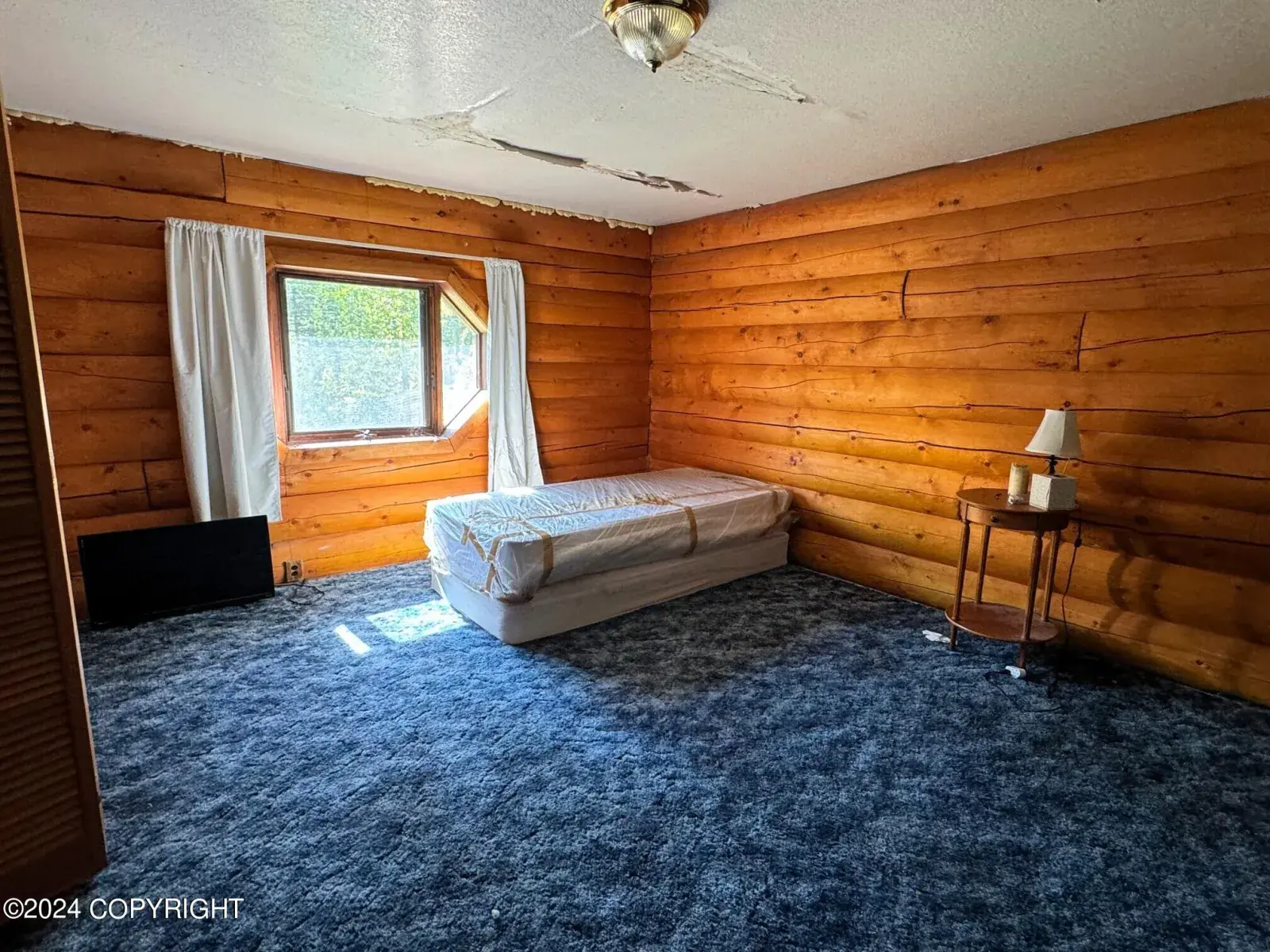 Nice big log house on 3.63 acres, tucked away with Squirrel Creek frontage to the South. House is dated but has good bones with lots of possibilities! Being sold as is. NO PROPERTY TAXES either! Seller will owner finance with 30% down.