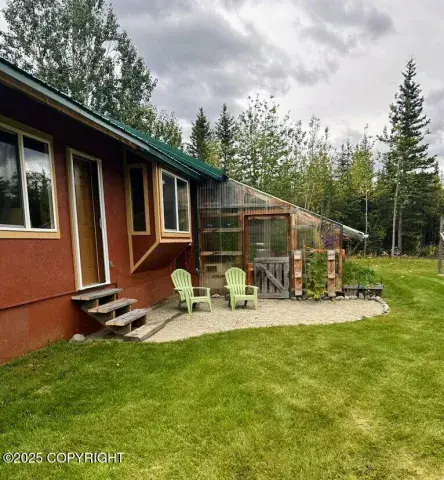 Well crafted and spacious home with guest cabin on property. Solar Panels, wood stove, Toyo stoves, 1 bedroom, 3/4 bathroom, large newly remodeled kitchen with lots of shelving and counter space, dining area, large recently expanded living room. Green house right off the kitchen with garden next to it and it’s own water holding tank. Large fire pit, generator shed, wood shed, work shop, storage shed, septic, buried water tanks, guest house, gas tank for filling car. Newly remodeled and all on 5 acres next to AHTNA land for 2 miles until the Copper River. Located in rural Kenny Lake and close to Kenny Lake school, the fire department, 2 stores, library and community hall. Beautiful views all along the road. Close to Salmon Fishing in Chitina on the famous Copper River and well located to get to Glennallen or Valdez. This house has it all with only a few neighbors. Live your dream! This house has the comfort of everything you need and off grid! No property taxes!!