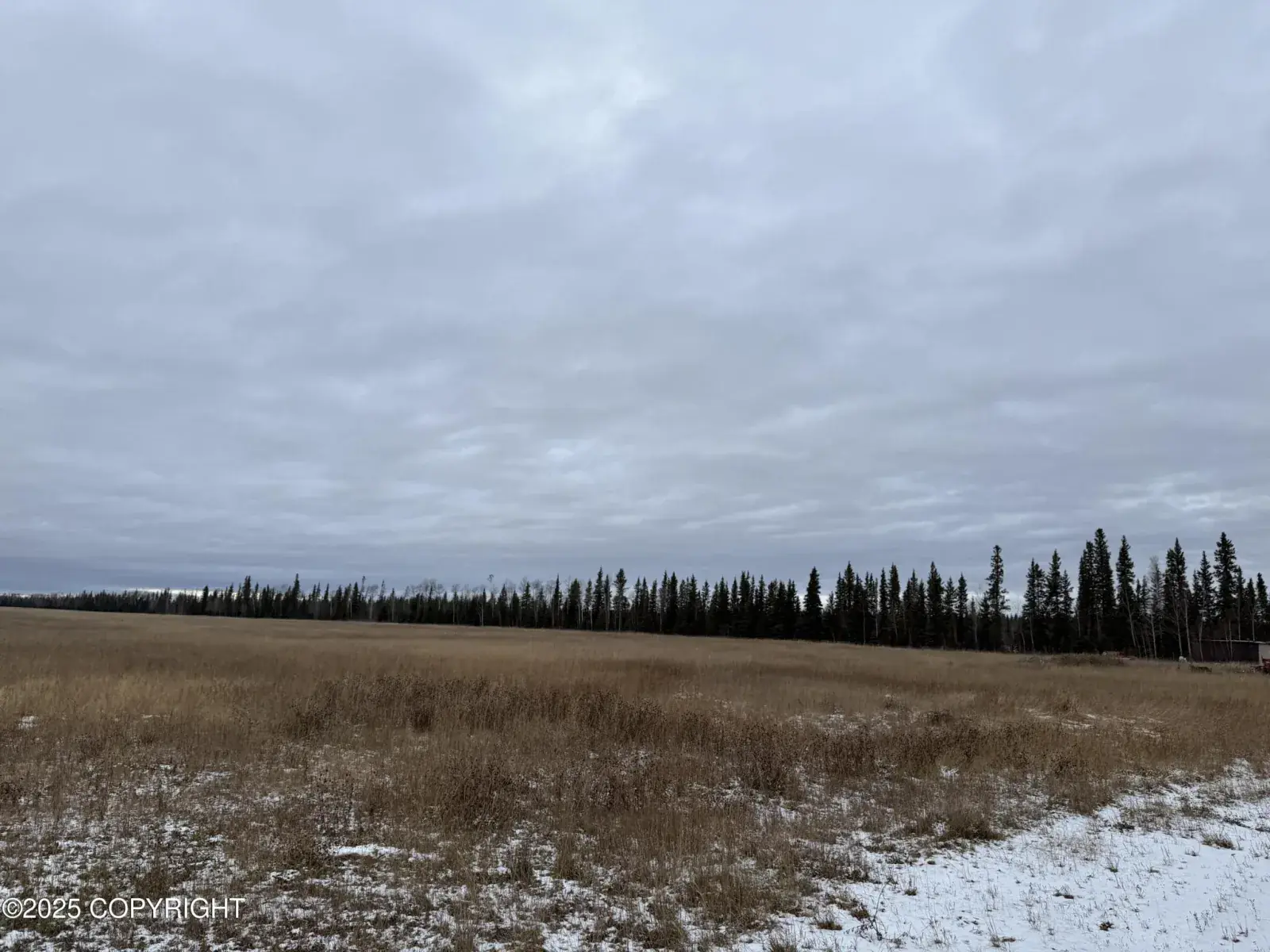 NOTICE – DISCLOSURE OF CONFLICT OF INTEREST: Licensee is the seller and related to the sellers of the property. 146.02 acres with ag covenant. Approximately 125.5 acres in brome hay production. There has been commercial power in the past. Wooded area along Tanana Loop Extension provides privacy from the paved road which is DOT maintained. No property taxes.