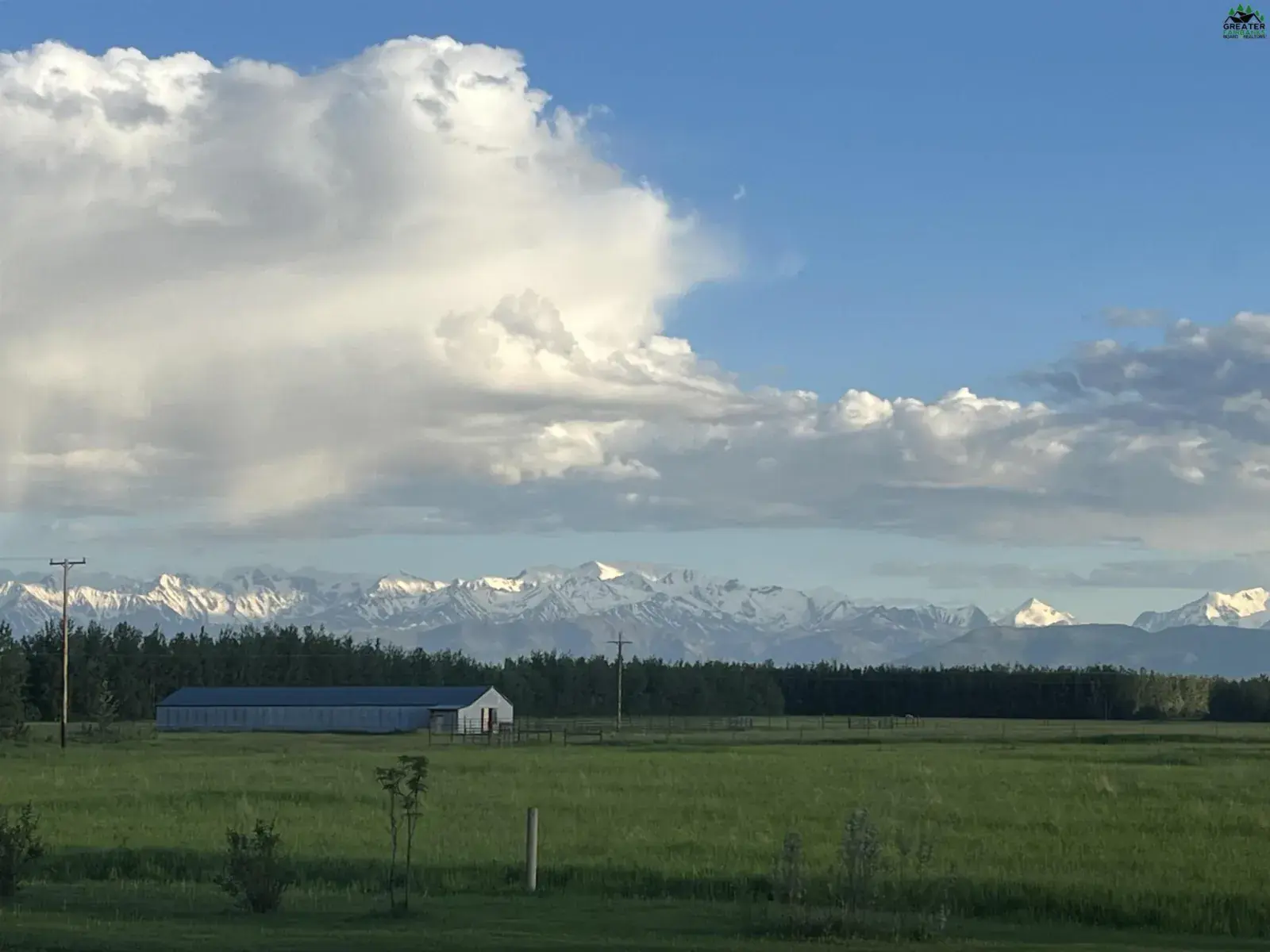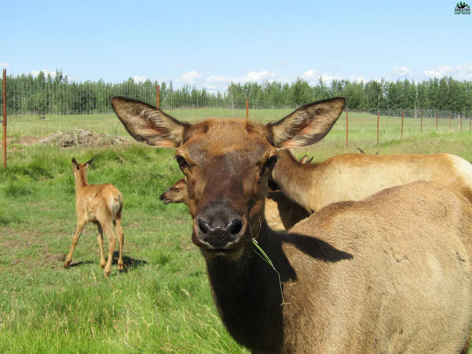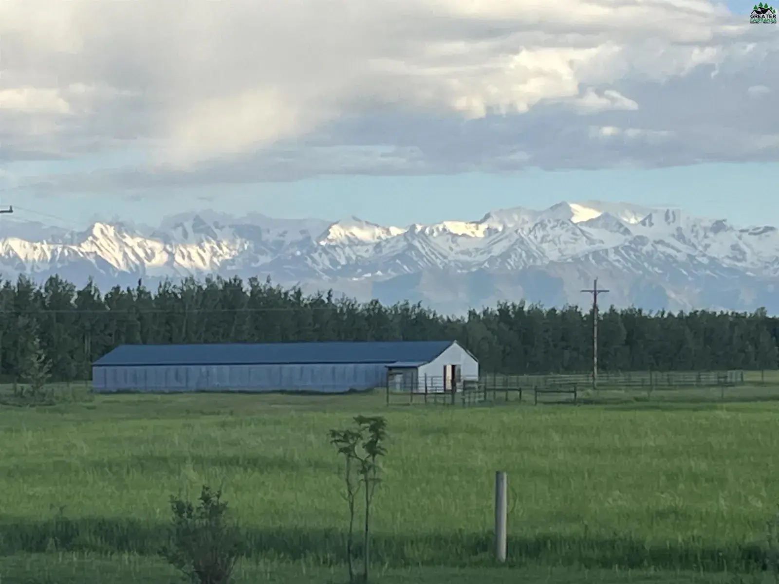 Over 2000 acres with log home, 2400 sq ft shop, 4800 sq ft cattle and storage barn, 3400 sq ft Quonset storage building on concrete pad, 30′ x 60′ Gothic Design high tunnel with proven snow load design, and one bed/one bath cabin. Log home has 8" four sided logs with 3 bedrooms, office, and 2 baths with spectacular mountain view. 2400 sq ft shop has metal roof, 14′ ceiling with 2 13′ x 16′ overhead doors. Commercial power with 200 amp service. Internet. 5 wells. Over 13 miles of 8′ 17 wire high tensile game fencing, about 5 miles of cattle fencing, 2.5 miles river frontage, 3′-5′ to gravel with rich soil. 40′ x 40′ Elk handling facility. About 1270 agrible acres. 120 acres current hay production. 750 acres wooded with harvestable timber, trails, and access. 7 connexes. Pride of ownership is evident in every aspect of this property. If you have dreamed of owning a working ranch in Alaska, this is what you have been waiting for. No property tax.