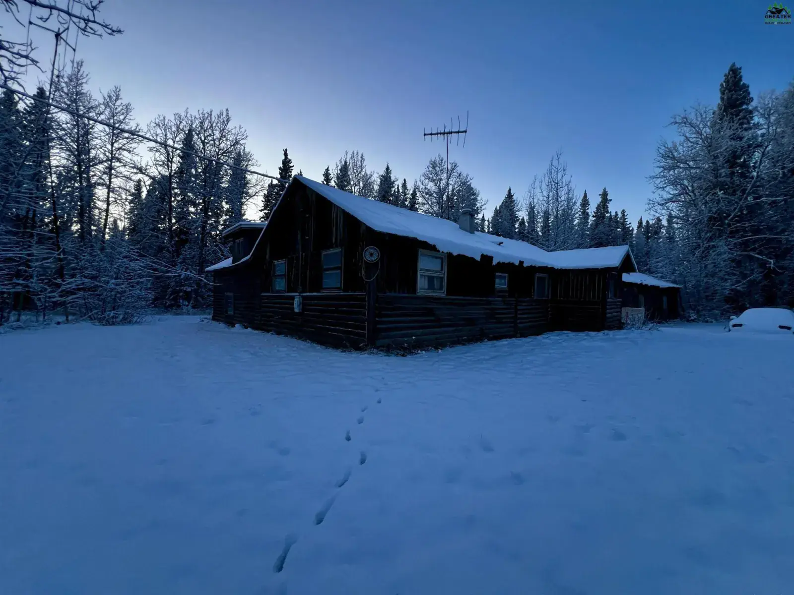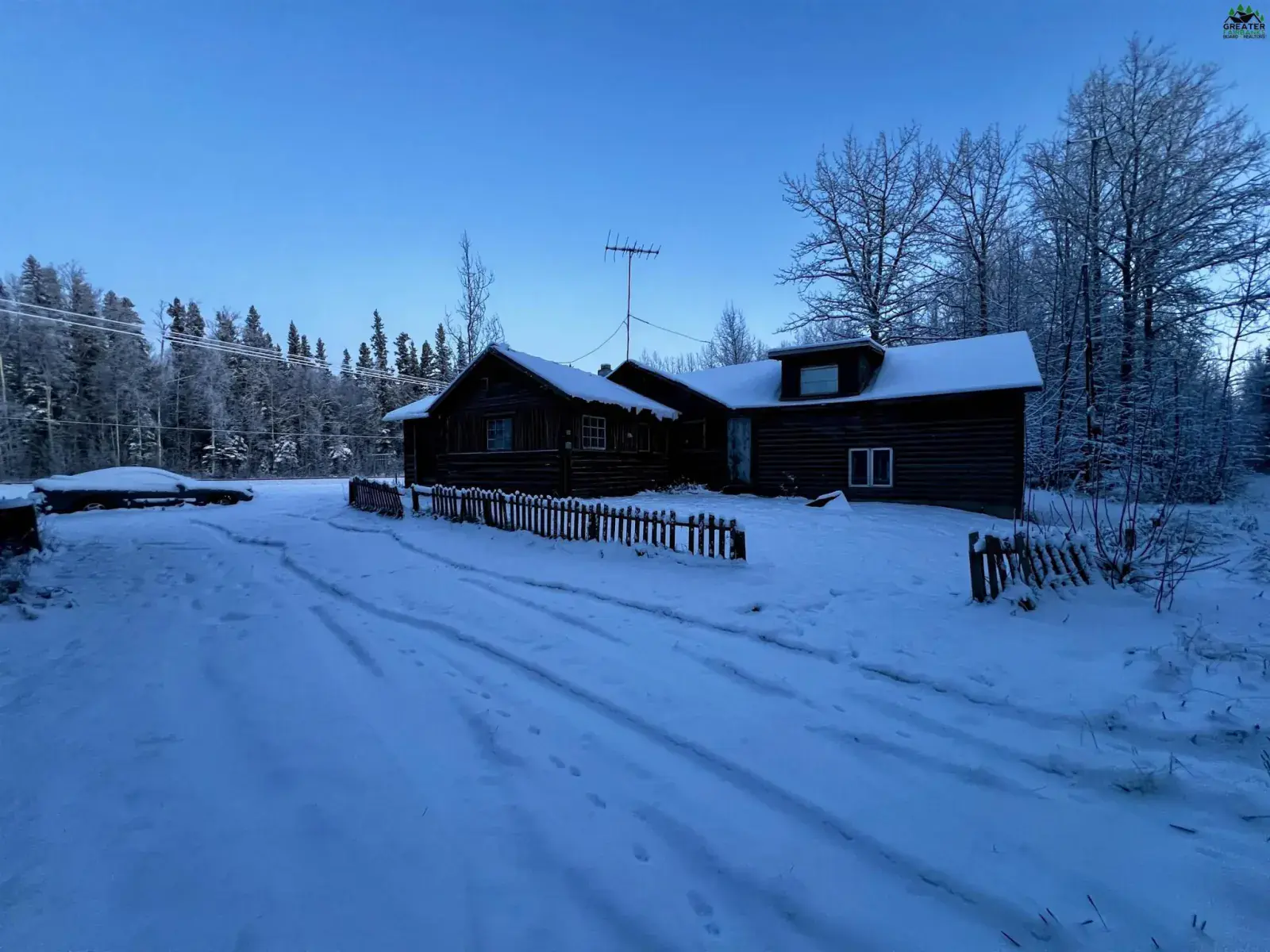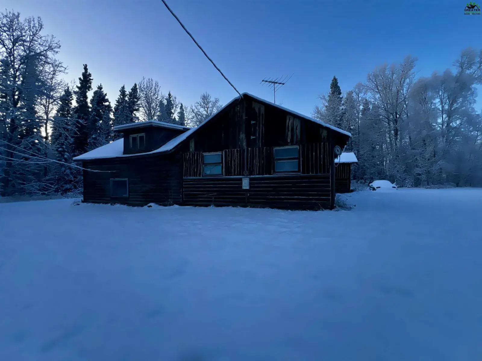 2-bed, 1-bath log home with Richardson Highway frontage on 4.5 acres. Property features both an attached garage and a detached garage. Home has a private well and septic system; condition of both is currently unknown. Build year and square footage are estimated.