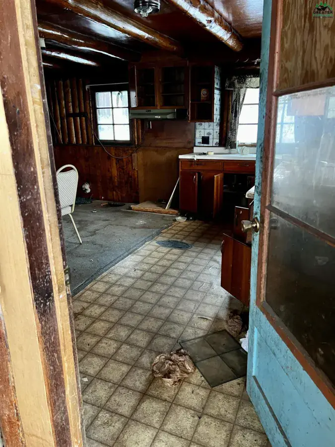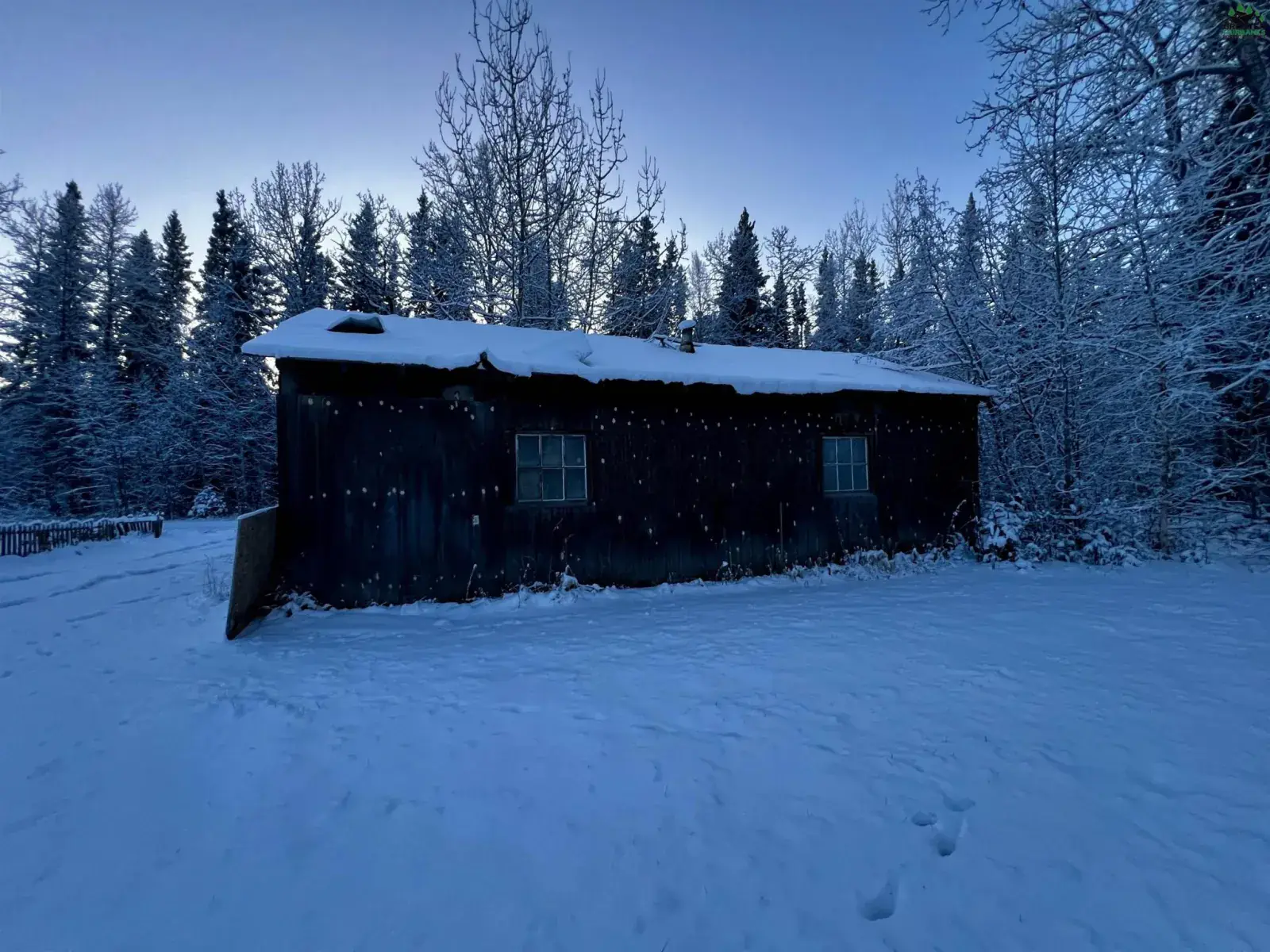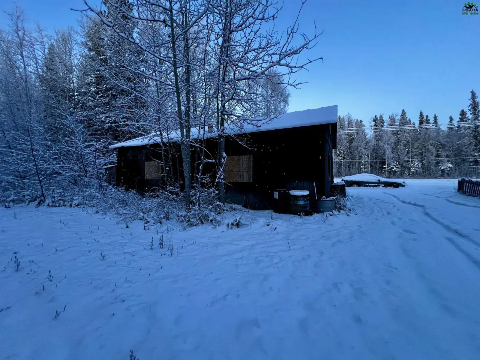 2-bed, 1-bath log home with Richardson Highway frontage on 4.5 acres. Property features both an attached garage and a detached garage. Home has a private well and septic system; condition of both is currently unknown. Build year and square footage are estimated.