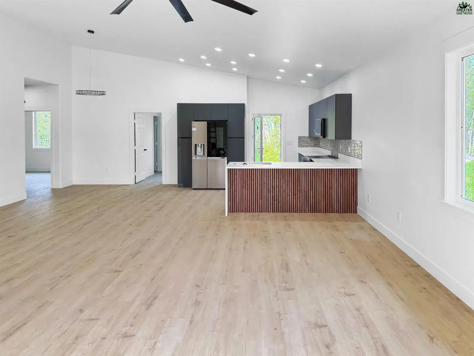 This beautifully designed modern home featuring high vaulted ceilings and a bright, open-concept layout. With 1,800 square feet of thoughtfully planned living space, this 3-bedroom, 2-bathroom home offers everything you want in a home. The expansive living area is filled with natural light and connects effortlessly to a sleek, modern kitchen with quartz countertops, stainless steel appliances, and a large peninsula ideal for gatherings. The primary suite offers a peaceful retreat with a spa-inspired en-suite bathroom and generous walk-in closet. Two additional bedrooms provide flexibility for guests, a home office, or a growing family.
