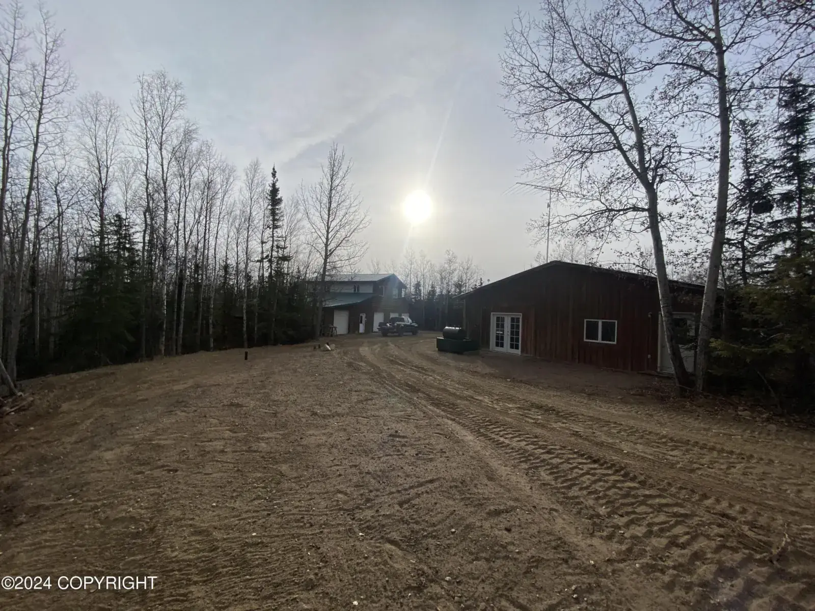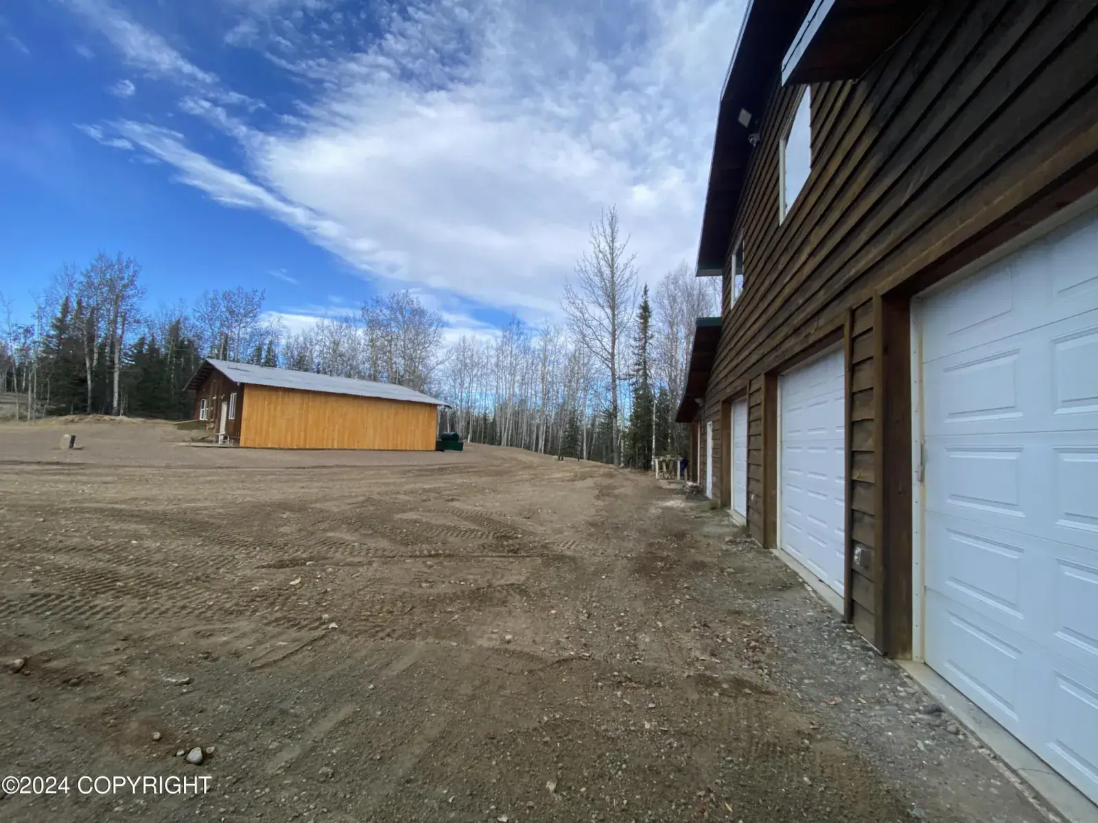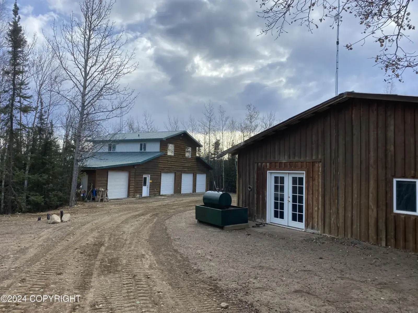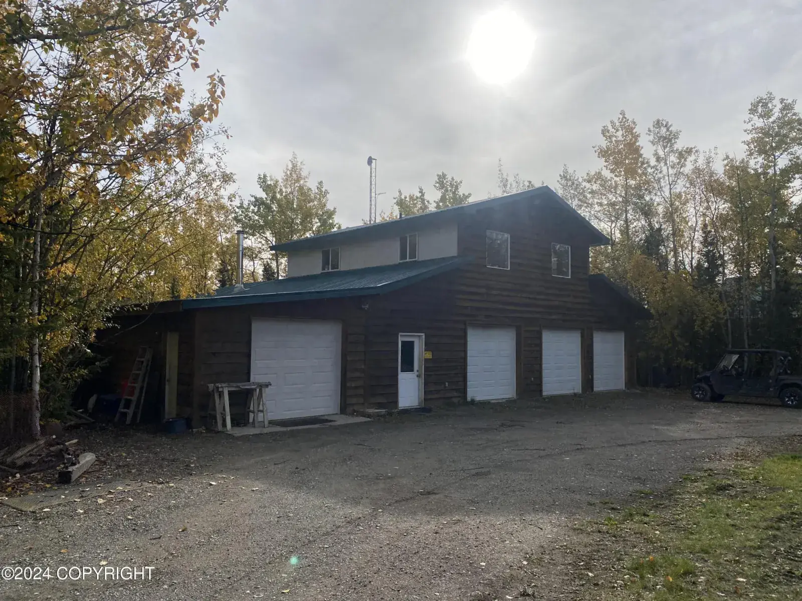 Large shop/garage divided into 3 individual areas w/living quarters above. 3 bed, 3/4 bath & large deck + 3/4 bathroom in garage. A second living structure for rental income w/1 bed, 3/4 bath, large living room, Toyo heat. Buyer to verify sq. ft. New well/new septic system. There are so many possibilities with this property. Seller will consider selling adjoining log cabin for a total 11 acres.