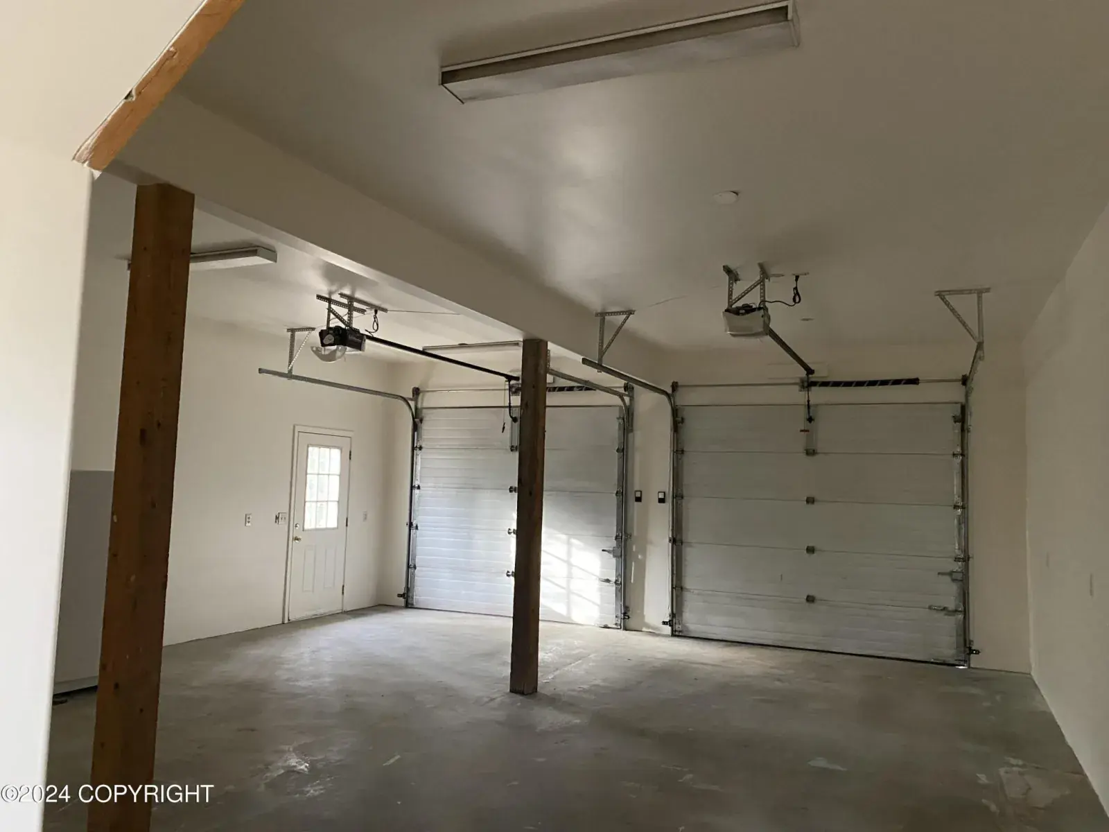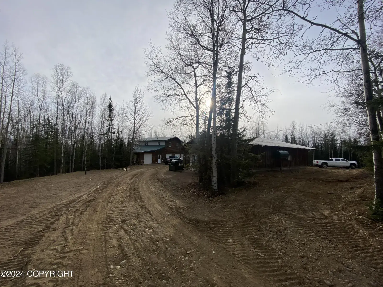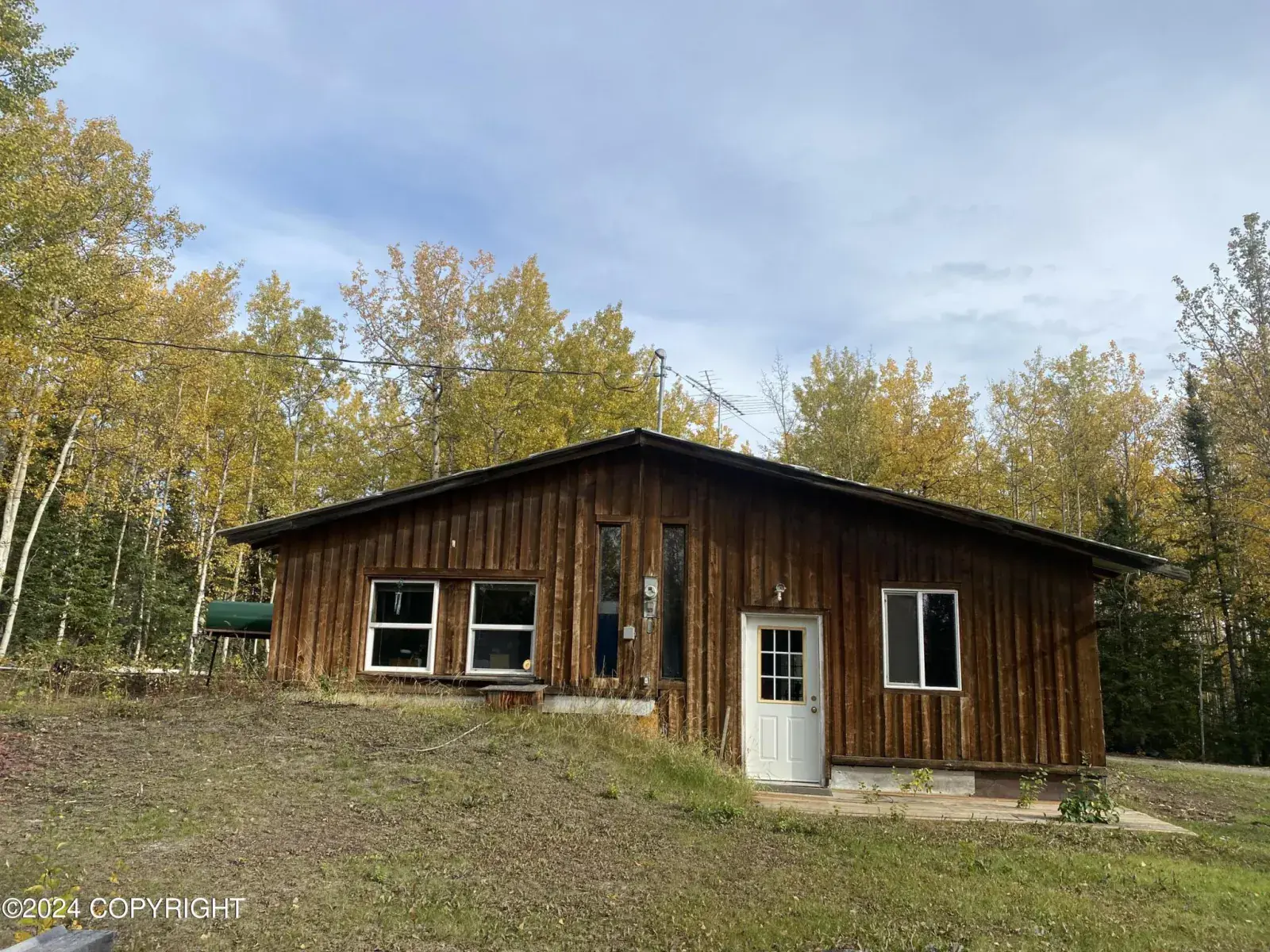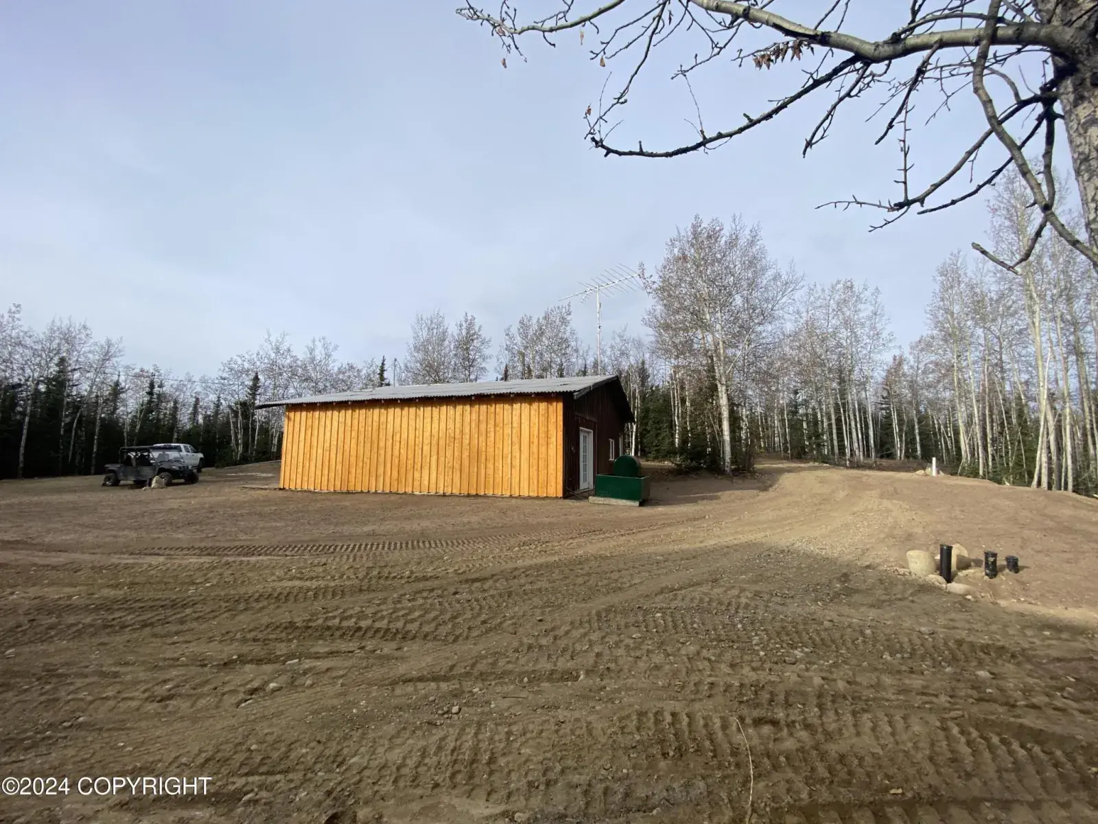 Large shop/garage divided into 3 individual areas w/living quarters above. 3 bed, 3/4 bath & large deck + 3/4 bathroom in garage. A second living structure for rental income w/1 bed, 3/4 bath, large living room, Toyo heat. Buyer to verify sq. ft. New well/new septic system. There are so many possibilities with this property. Seller will consider selling adjoining log cabin for a total 11 acres.