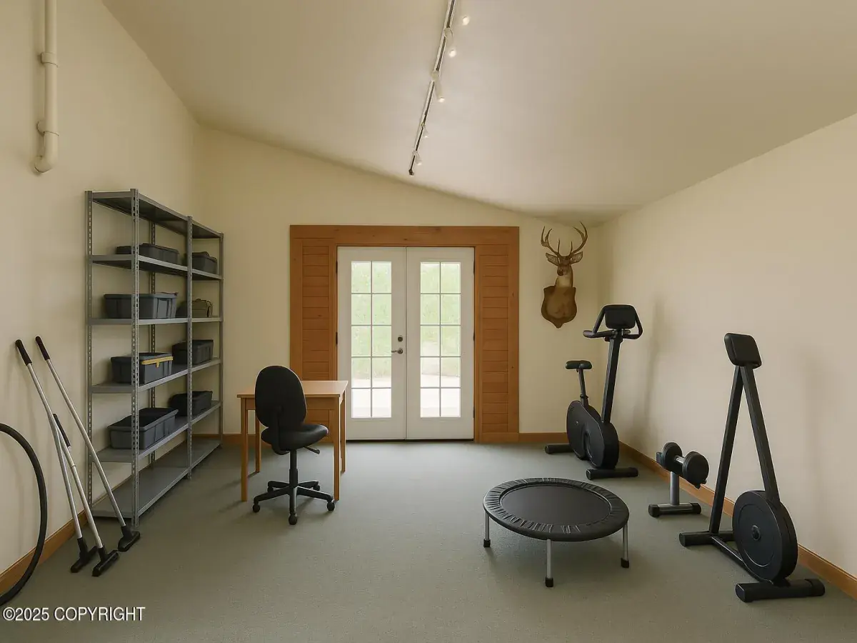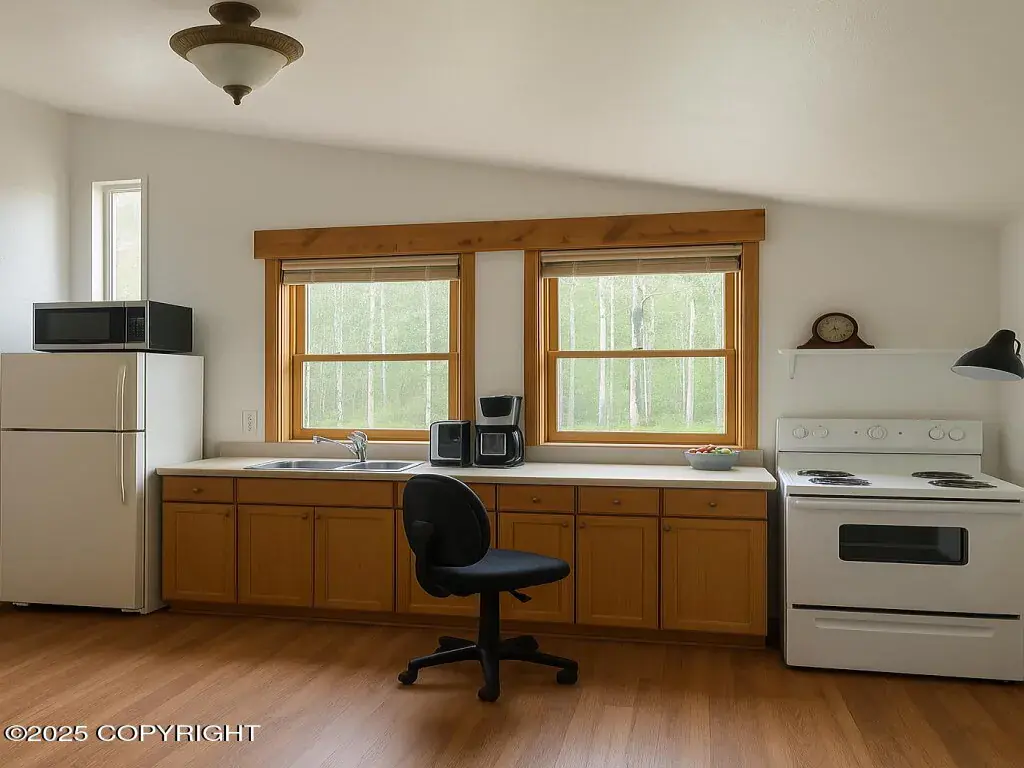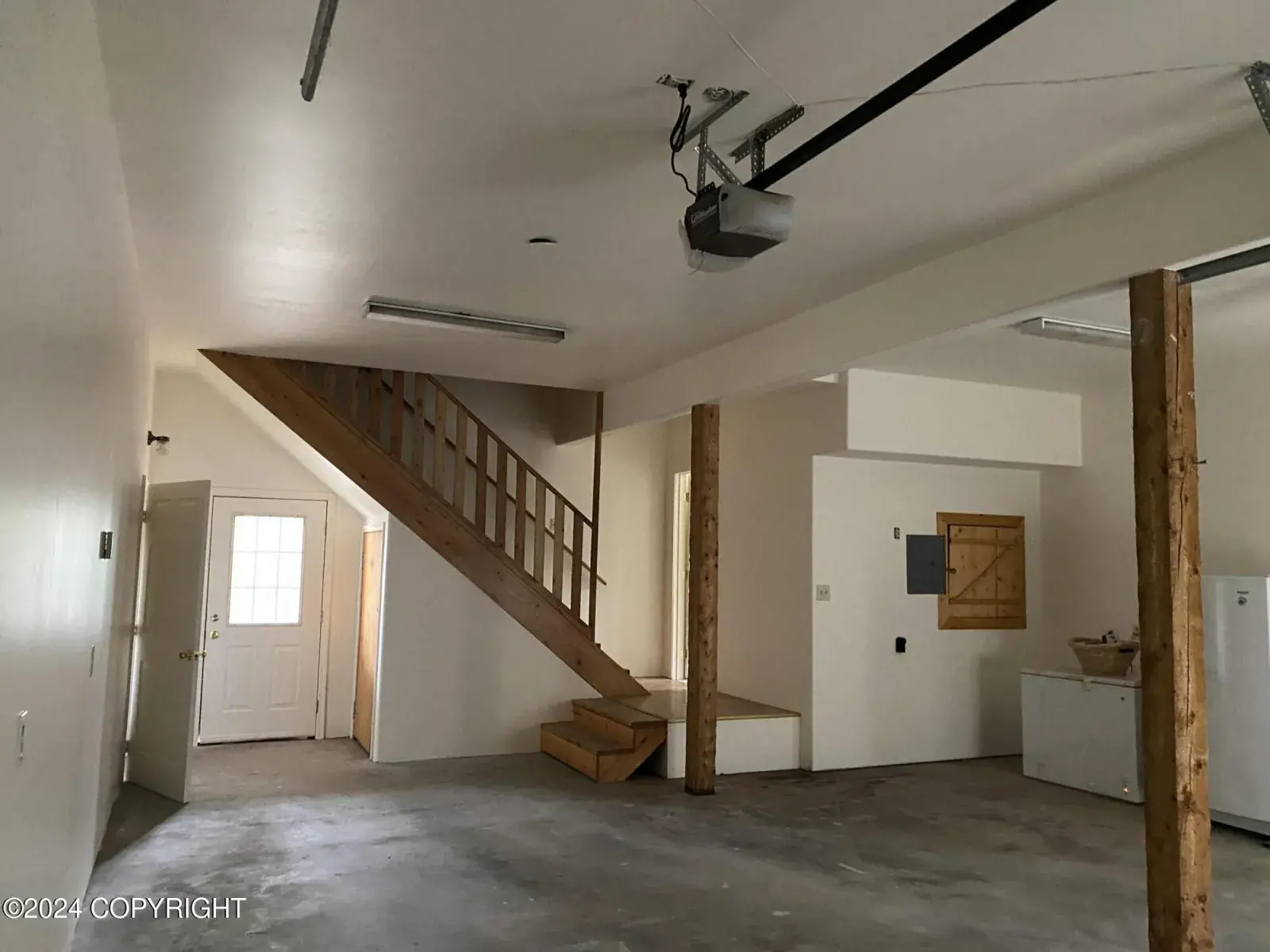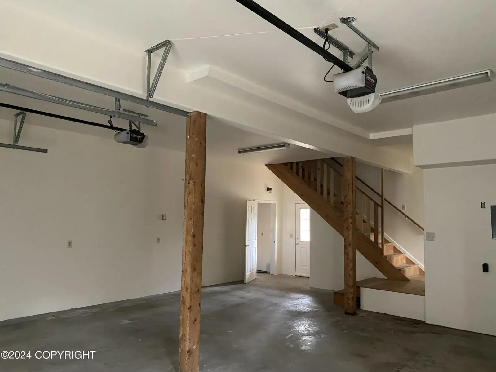 Large shop/garage divided into 3 individual areas w/living quarters above. 3 bed, 3/4 bath & large deck + 3/4 bathroom in garage. A second living structure for rental income w/1 bed, 3/4 bath, large living room, Toyo heat. Buyer to verify sq. ft. New well/new septic system. There are so many possibilities with this property. Seller will consider selling adjoining log cabin for a total 11 acres.