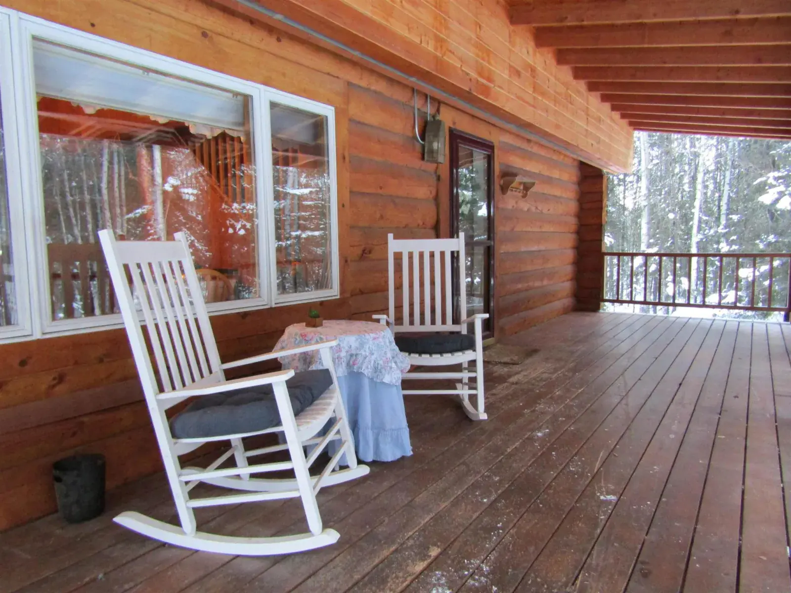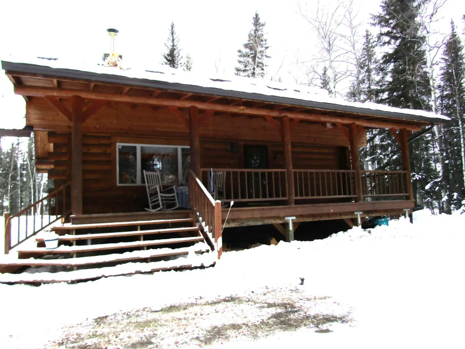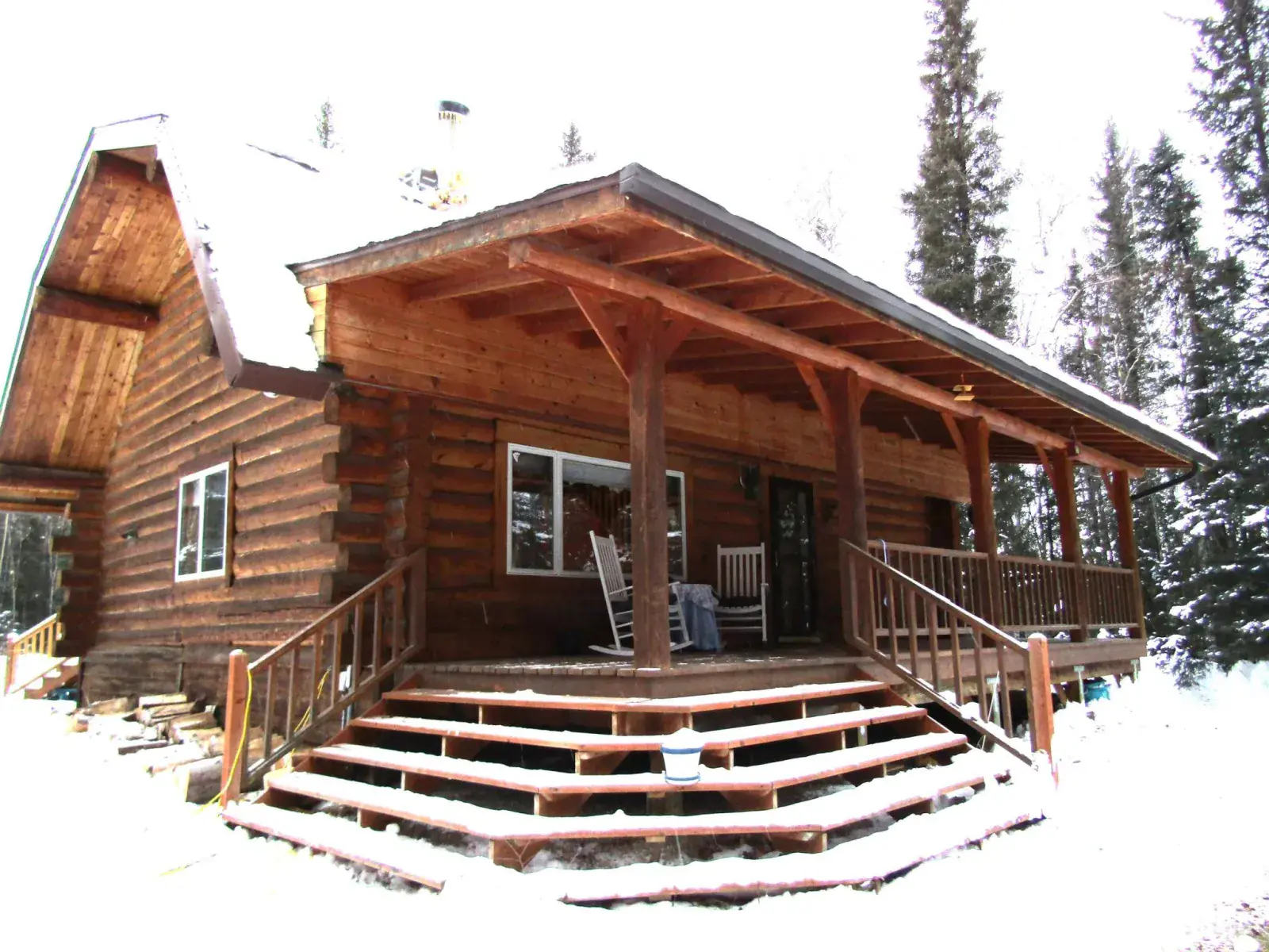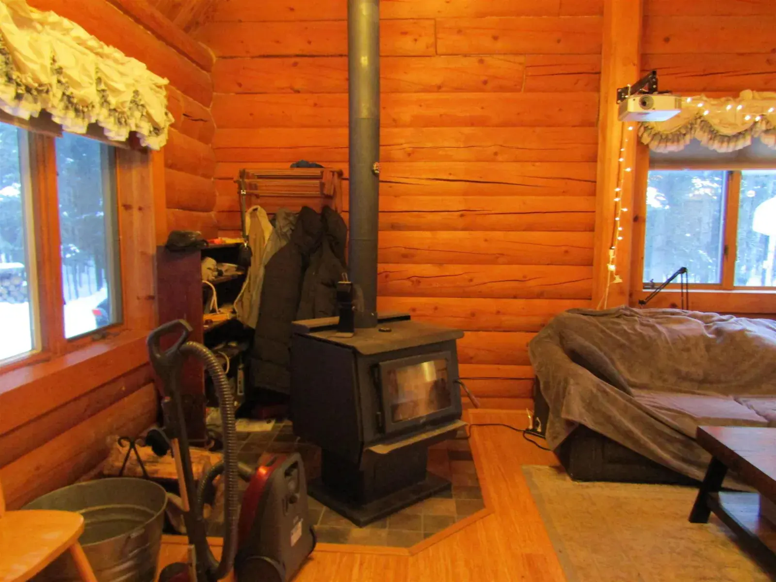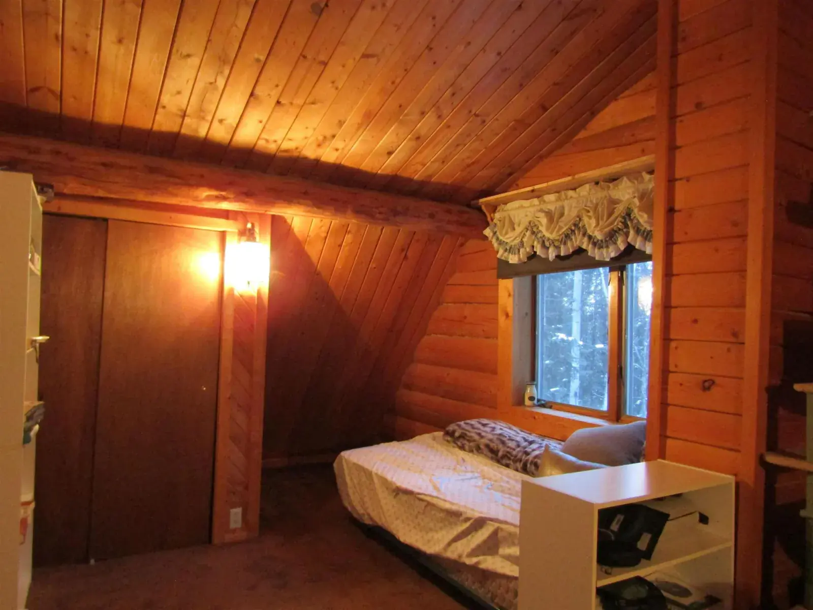This charming log home features a fully covered front porch—an ideal spot to enjoy sunny summer afternoons. Out back, the deck overlooks a spacious backyard and greenhouse, offering both privacy and versatility. Inside, the living area boasts a vaulted ceiling and an open layout that flows seamlessly into the dining area and kitchen. The main floor includes a bedroom and full bathroom, while the upper level offers a second bedroom and a generously sized open area perfect for a home office, extra sleeping space, or whatever suits your needs. The full, open basement includes a half bath and is ready to be easily finished. A forced-air furnace provides ample heat, or can serve as backup if you prefer heating with the Blaze King wood stove—adding both efficiency and the cozy ambiance everyone loves.
