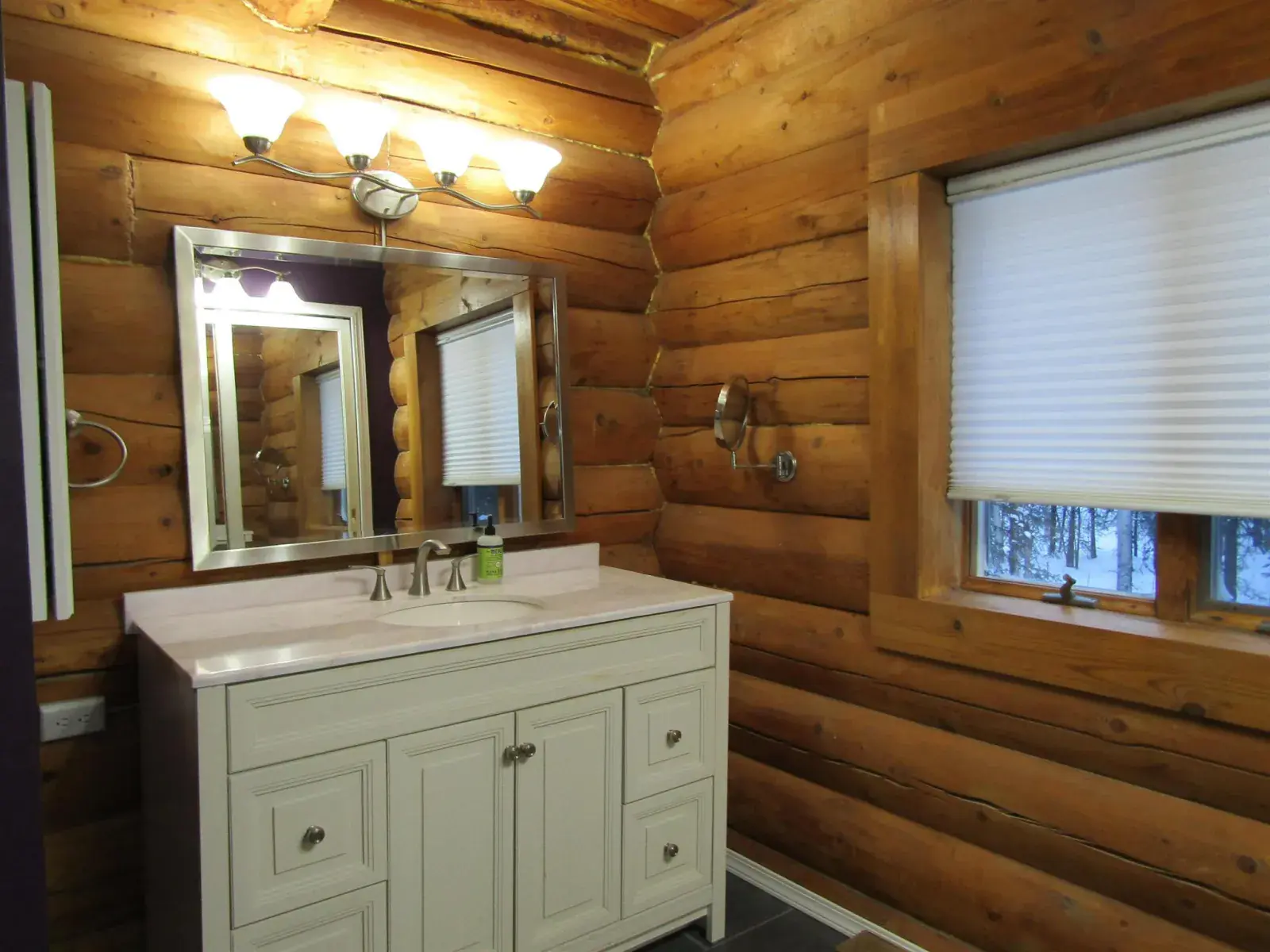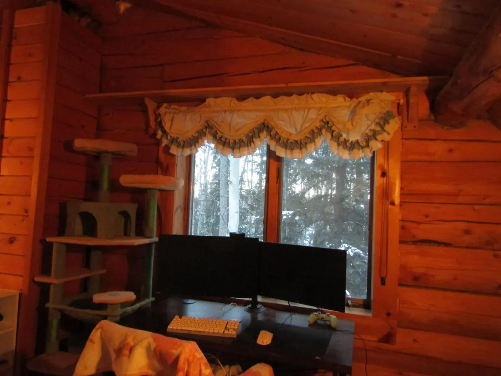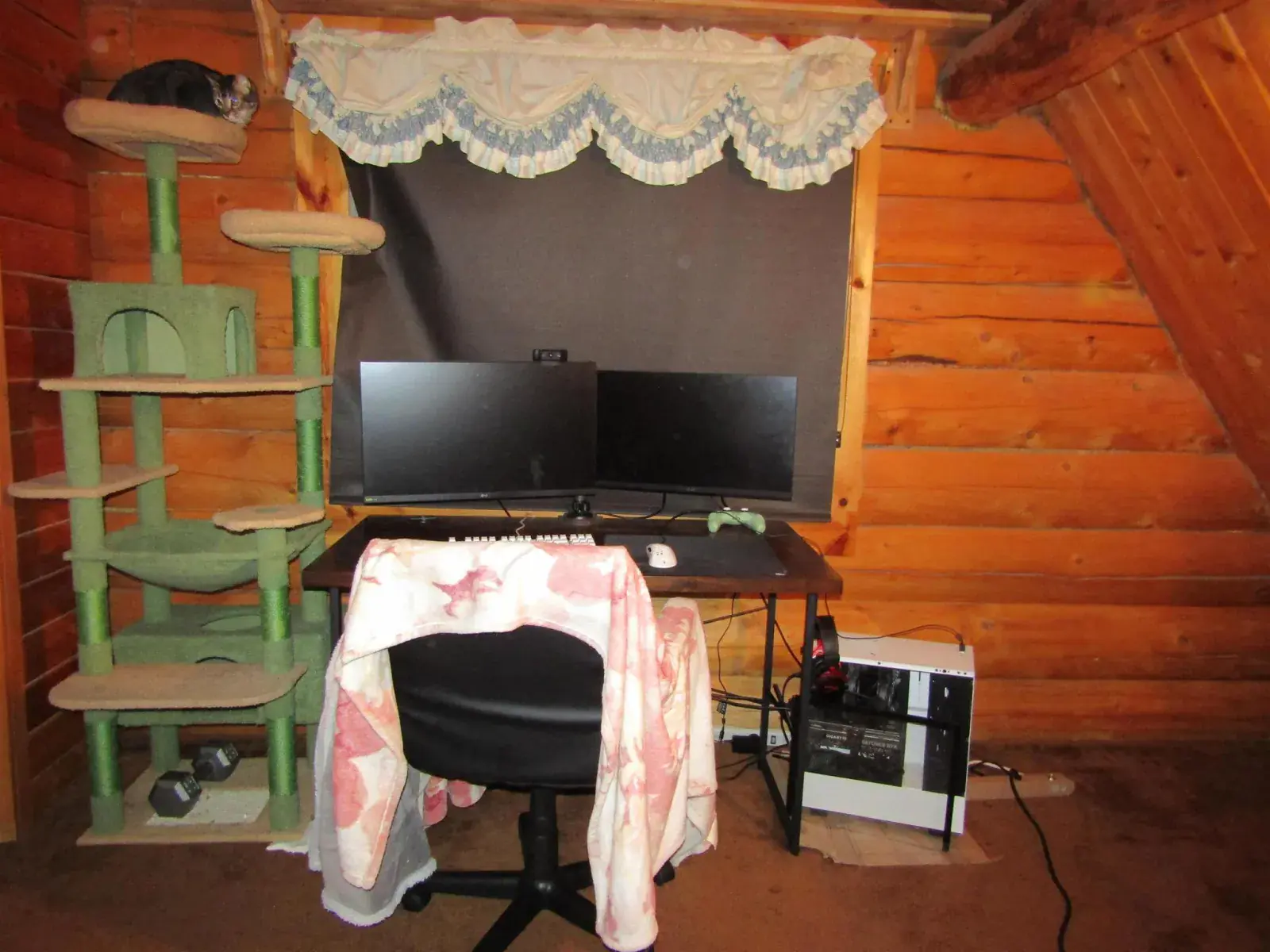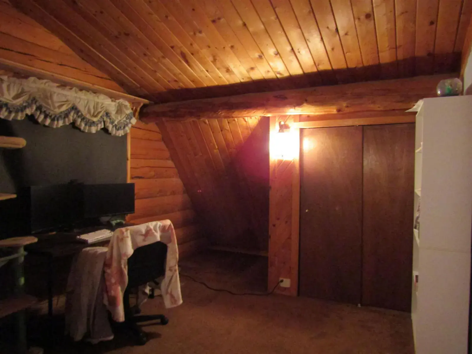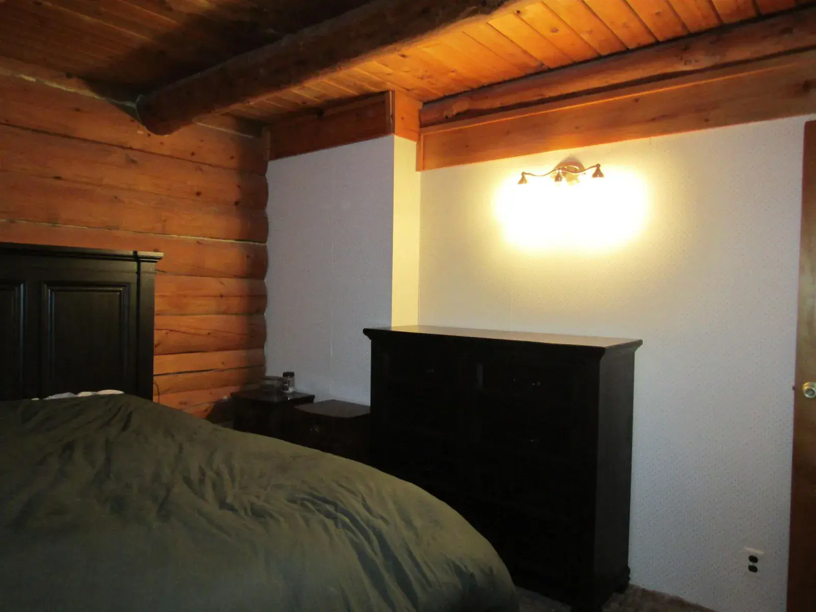 This charming log home features a fully covered front porch—an ideal spot to enjoy sunny summer afternoons. Out back, the deck overlooks a spacious backyard and greenhouse, offering both privacy and versatility. Inside, the living area boasts a vaulted ceiling and an open layout that flows seamlessly into the dining area and kitchen. The main floor includes a bedroom and full bathroom, while the upper level offers a second bedroom and a generously sized open area perfect for a home office, extra sleeping space, or whatever suits your needs. The full, open basement includes a half bath and is ready to be easily finished. A forced-air furnace provides ample heat, or can serve as backup if you prefer heating with the Blaze King wood stove—adding both efficiency and the cozy ambiance everyone loves.