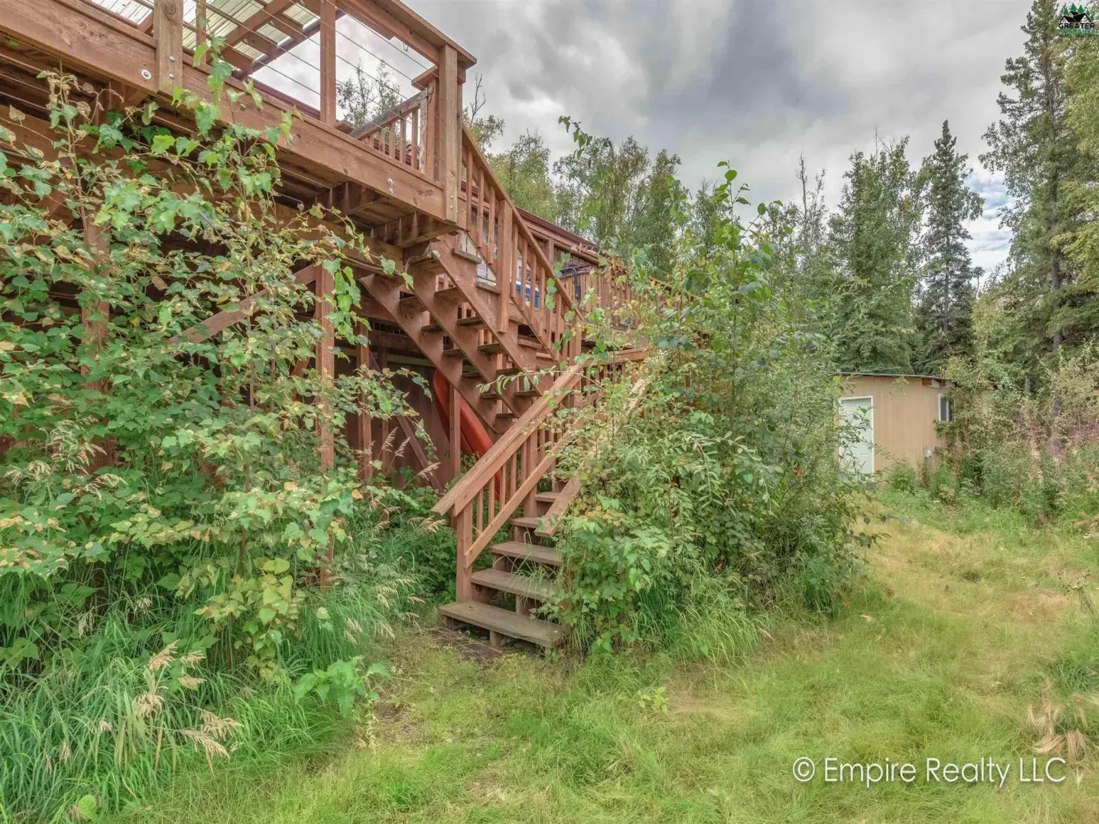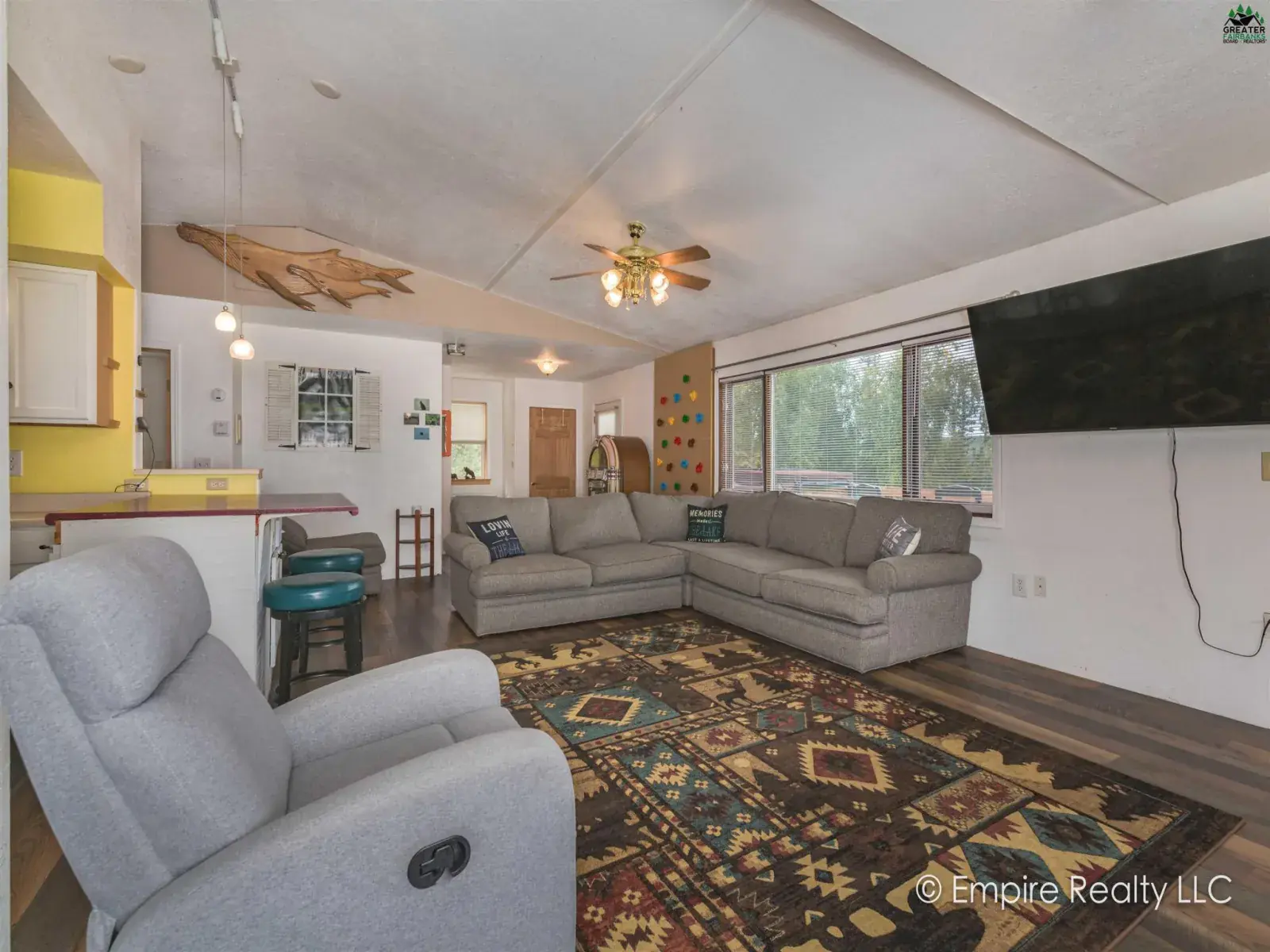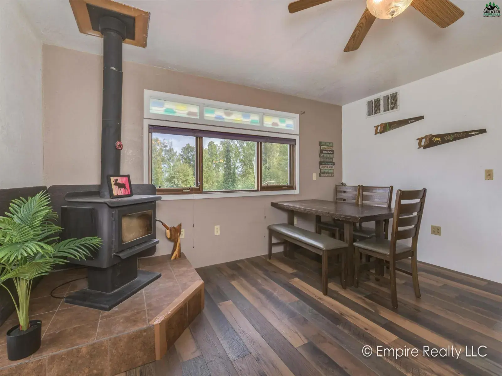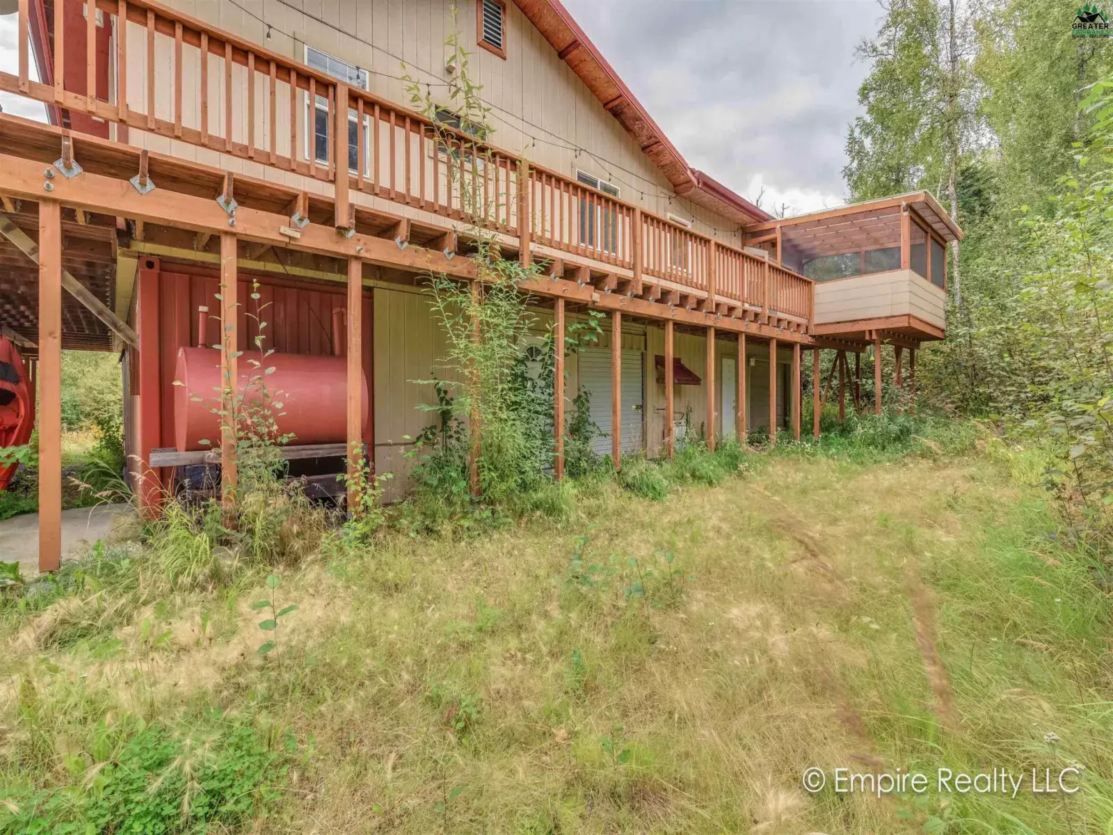 It is hard to beat a year round home with a view of Harding Lake for interior Alaska living! This three bed, one bath, two car garage home is just waiting for new owners. Enjoy the open and comfortable kitchen, dining and living area while you snuggle around the wood stove or during our beautiful summer days retire to the absolutely enormous deck for dinner and conversation with friends. The property offers a ton of storage – take your pick of either of two connex storage containers (one with electricity) or the dry storage in between. Of course, the garage is oversized for two cars anyway so there is more room to store there, too. The largest bedroom is removed from the others and has private access to a screened in portion of the deck. The house has been used an a bnb in the past and the furnishing are negotiable.