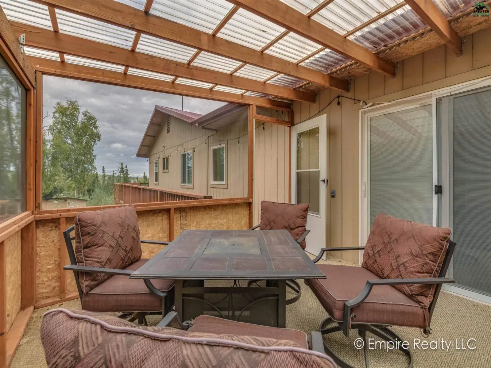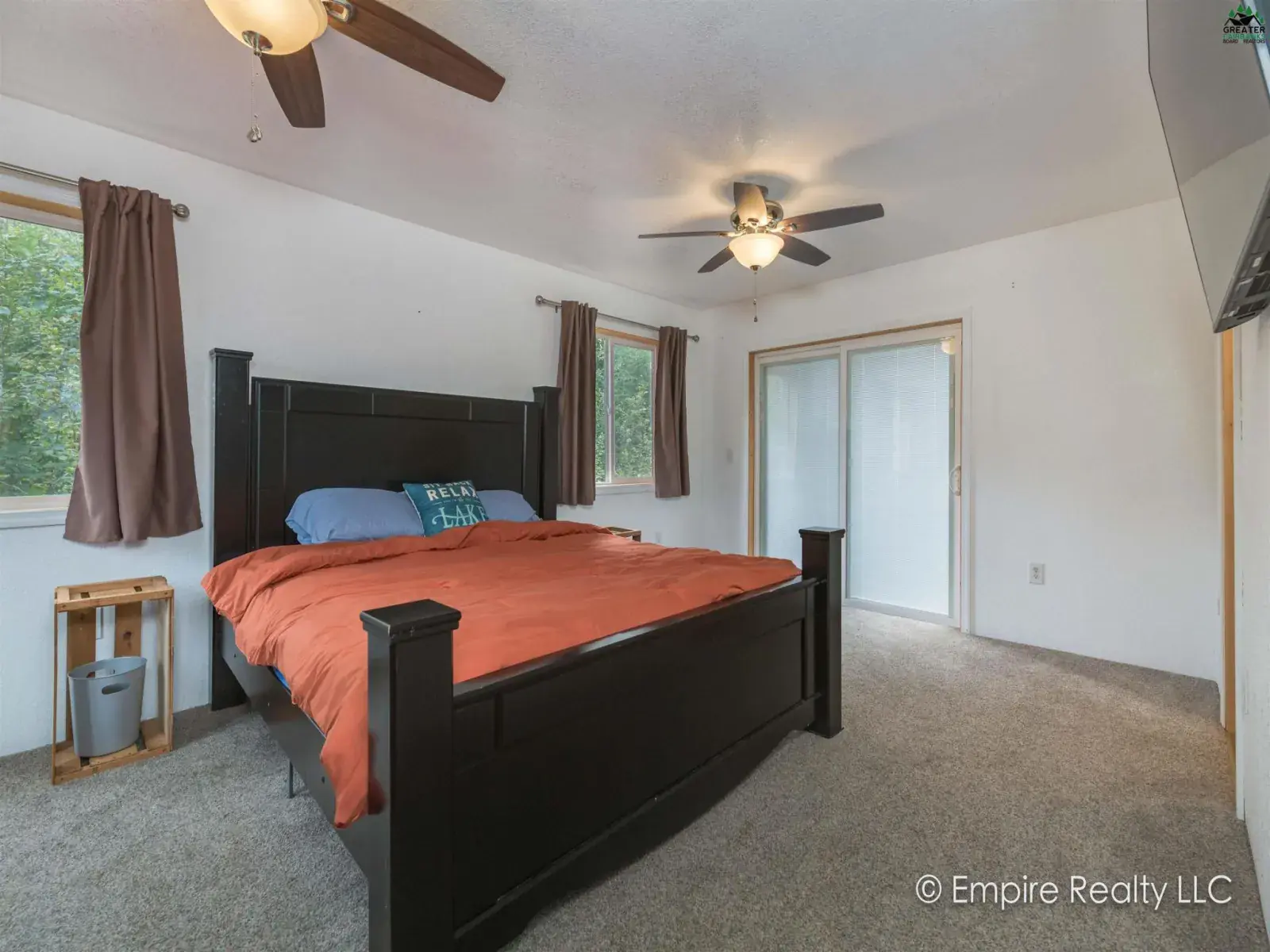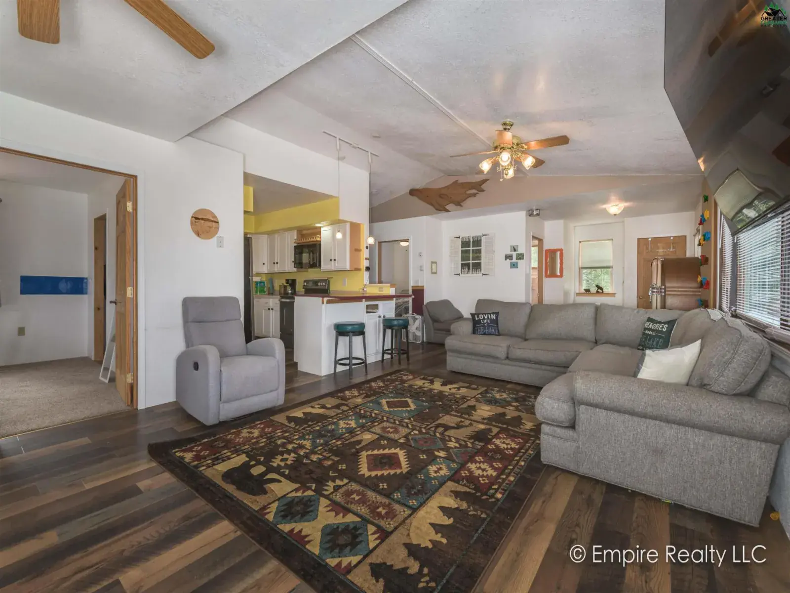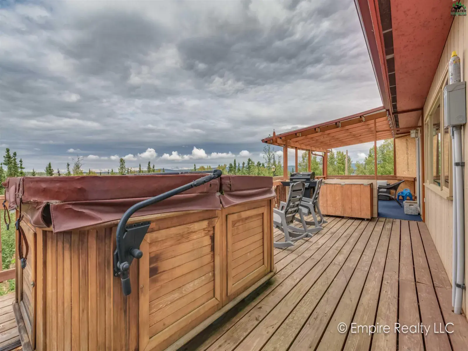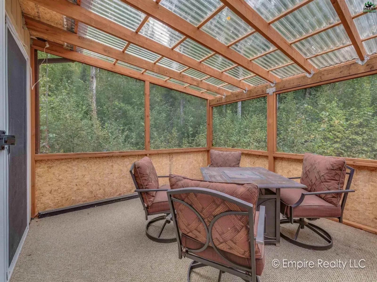 It is hard to beat a year round home with a view of Harding Lake for interior Alaska living! This three bed, one bath, two car garage home is just waiting for new owners. Enjoy the open and comfortable kitchen, dining and living area while you snuggle around the wood stove or during our beautiful summer days retire to the absolutely enormous deck for dinner and conversation with friends. The property offers a ton of storage – take your pick of either of two connex storage containers (one with electricity) or the dry storage in between. Of course, the garage is oversized for two cars anyway so there is more room to store there, too. The largest bedroom is removed from the others and has private access to a screened in portion of the deck. The house has been used an a bnb in the past and the furnishing are negotiable.
