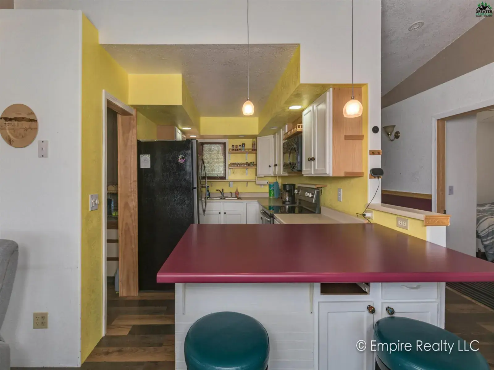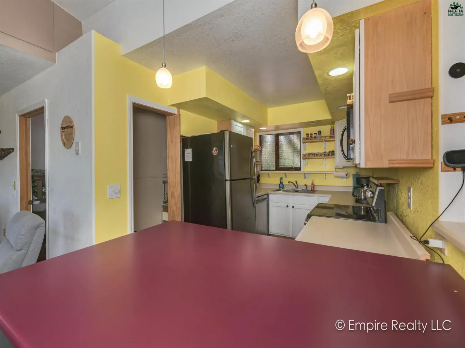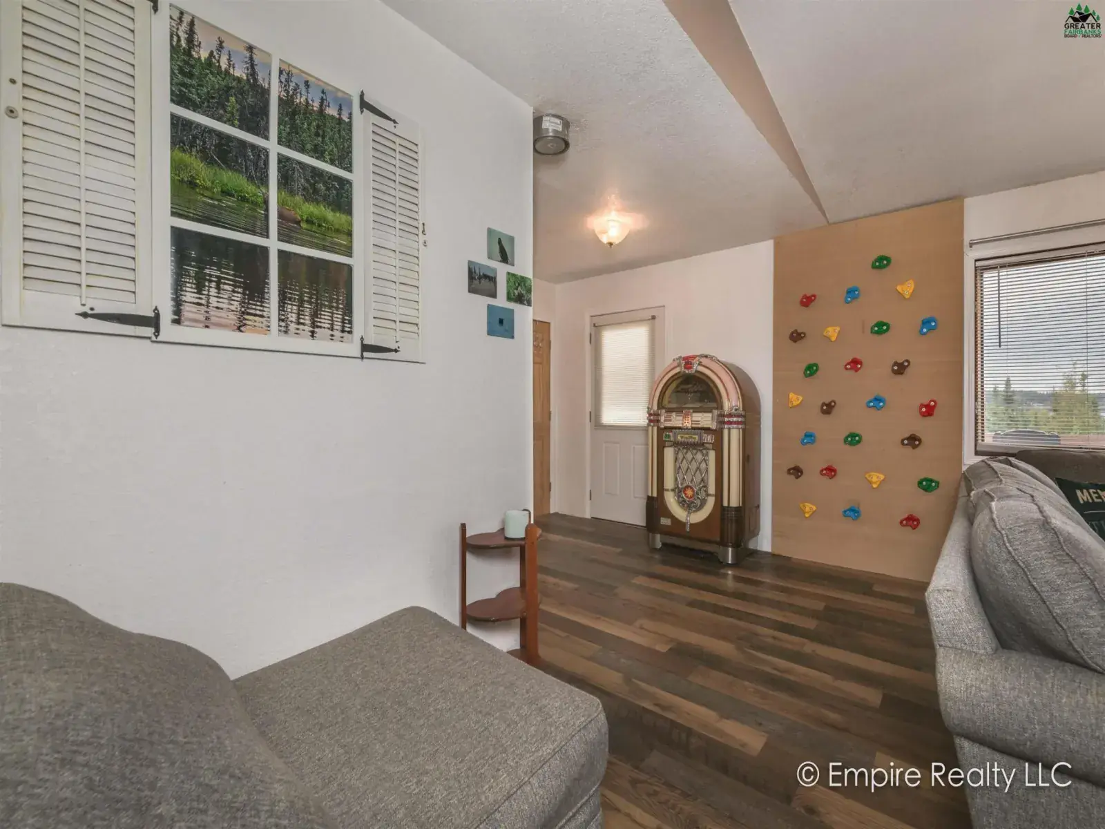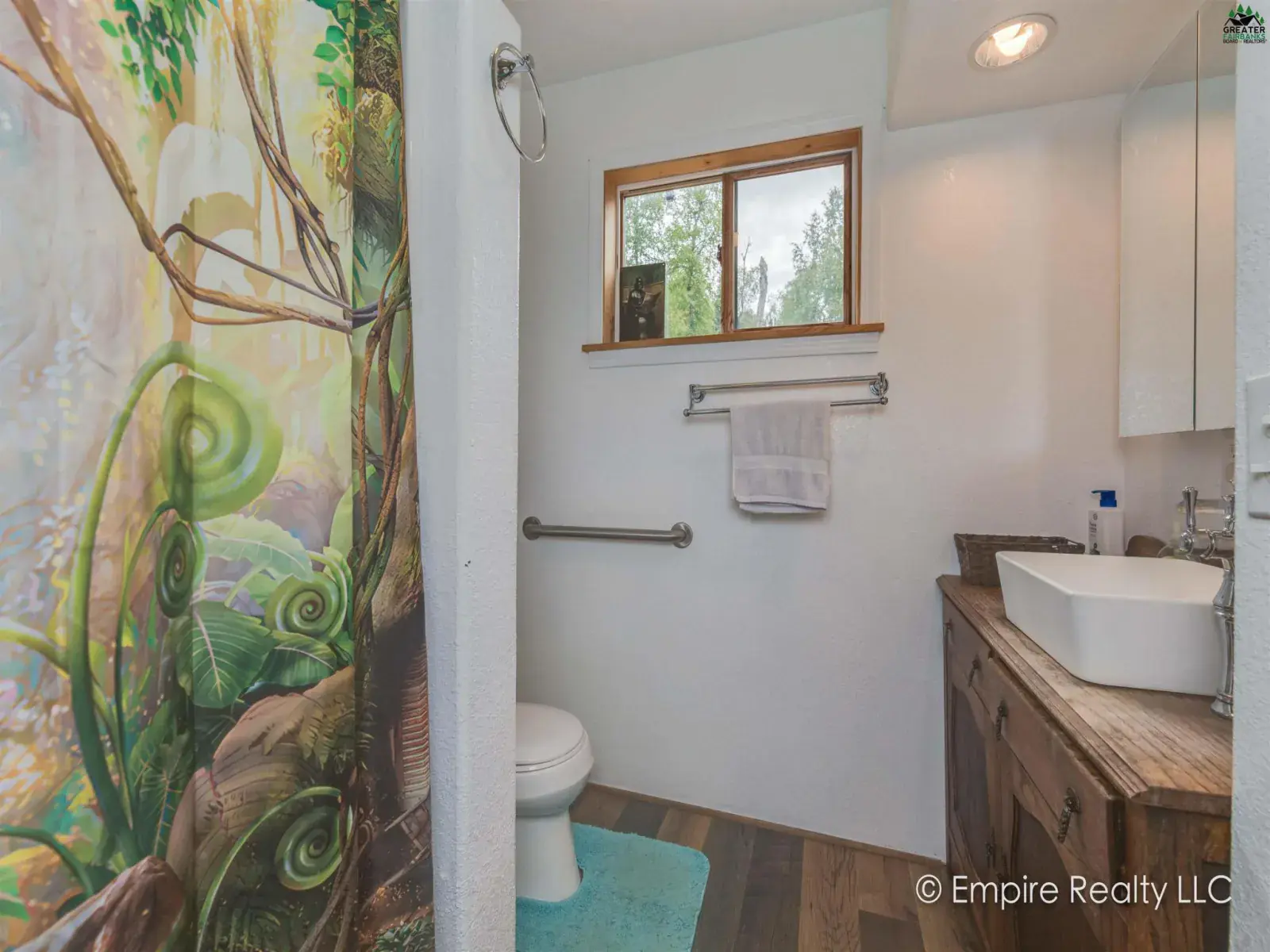 It is hard to beat a year round home with a view of Harding Lake for interior Alaska living! This three bed, one bath, two car garage home is just waiting for new owners. Enjoy the open and comfortable kitchen, dining and living area while you snuggle around the wood stove or during our beautiful summer days retire to the absolutely enormous deck for dinner and conversation with friends. The property offers a ton of storage – take your pick of either of two connex storage containers (one with electricity) or the dry storage in between. Of course, the garage is oversized for two cars anyway so there is more room to store there, too. The largest bedroom is removed from the others and has private access to a screened in portion of the deck. The house has been used an a bnb in the past and the furnishing are negotiable.