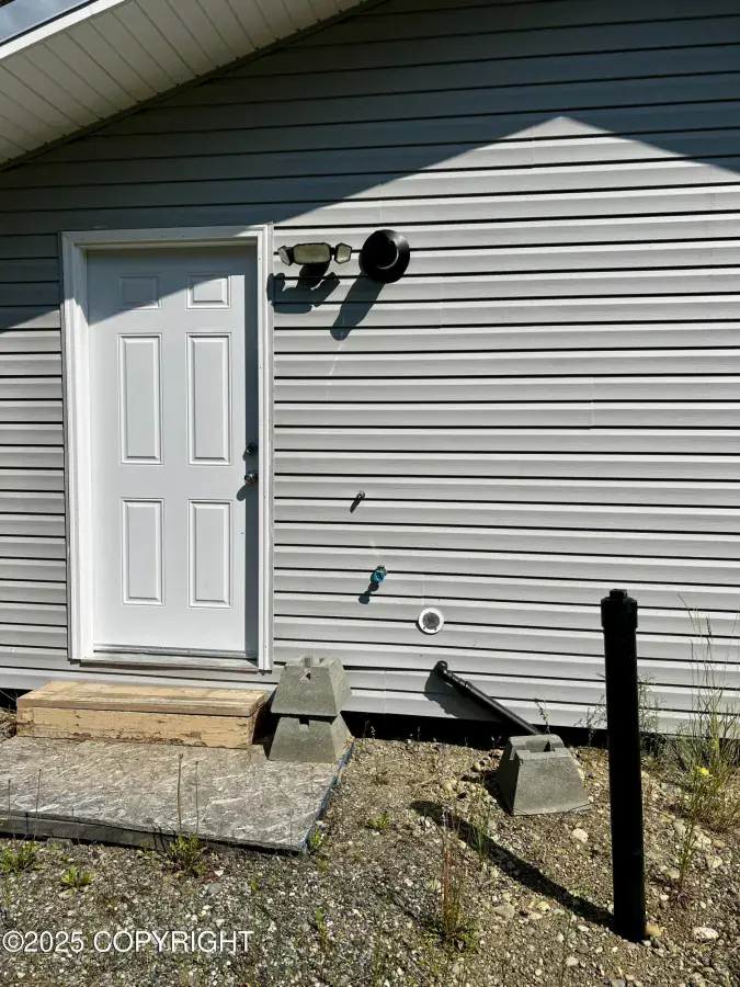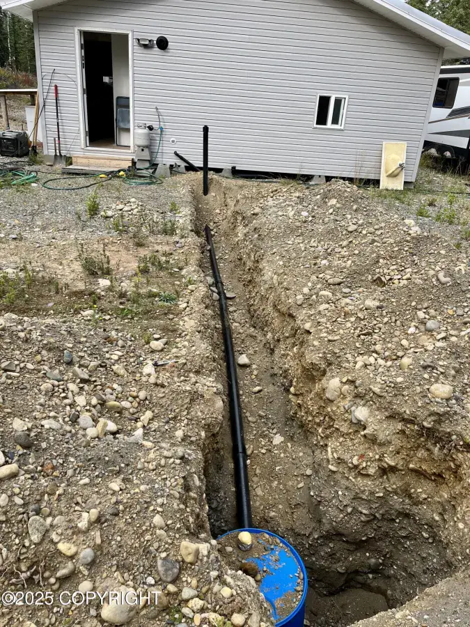 The property includes a private well, greywater drainage system with 55-gallon drums. Established raspberries, transplanted strawberries, chives, and rhubarb, ideal for a homesteading lifestyle.