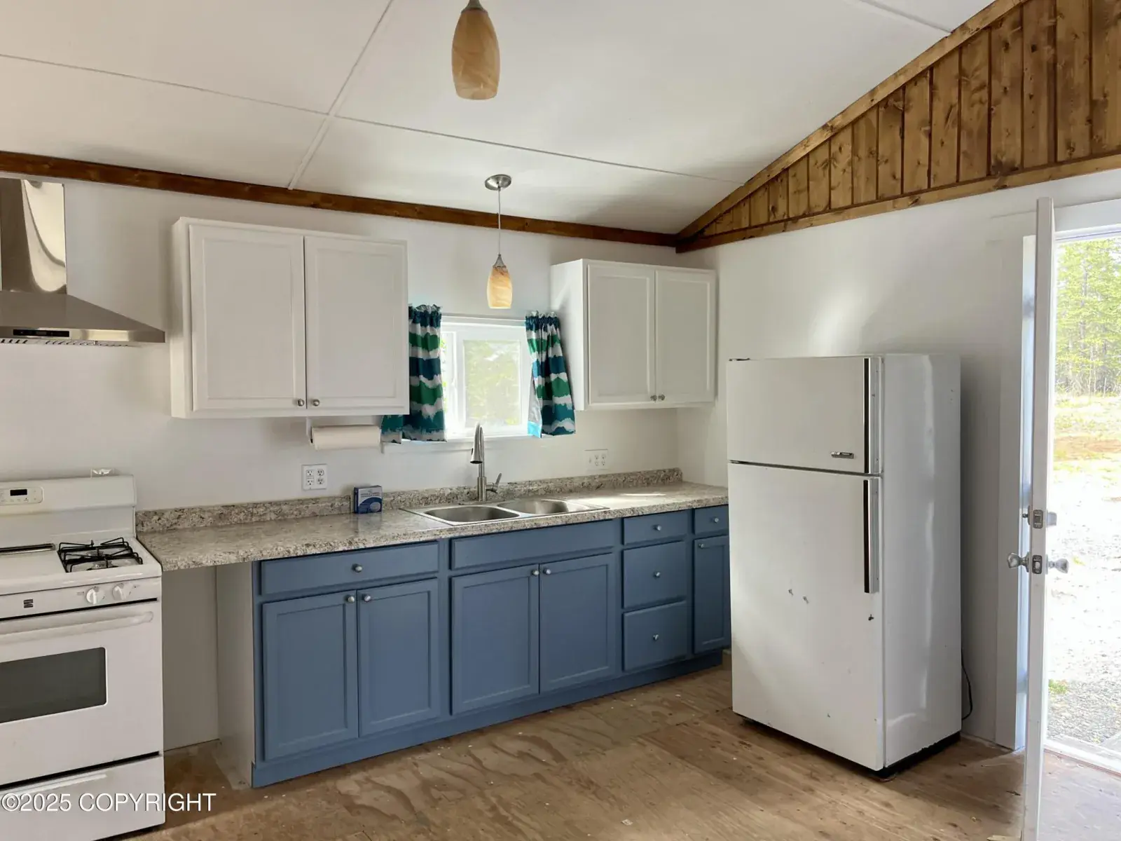 Located on 5 private acres in a quiet area, this off-grid property offers self-sufficient living with a generator system that powers both water and electricity. The kitchen includes a gas cookstove with tall propane tank, electric refrigerator, vent hood, and quality cabinetry from Lowe’s. A Rinnai on-demand hot water heater is connected to a separate propane bottle … click more buttonLocated on 5 private acres in a quiet area, this off-grid property offers self-sufficient living with a generator system that powers both water and electricity. The kitchen includes a gas cookstove with tall propane tank, electric refrigerator, vent hood, and quality cabinetry from Lowe’s. A Rinnai on-demand hot water heater is connected to a separate propane bottle, ready for exterior mounting.