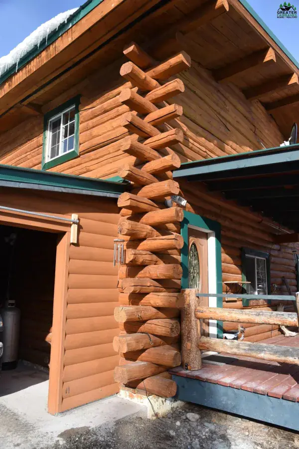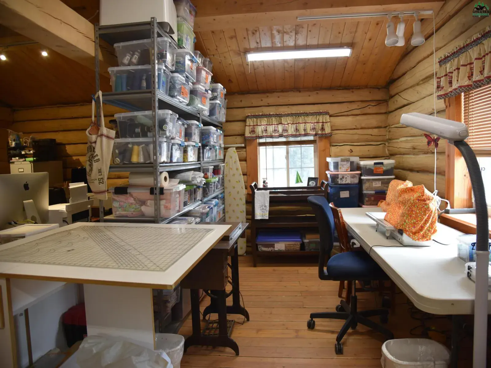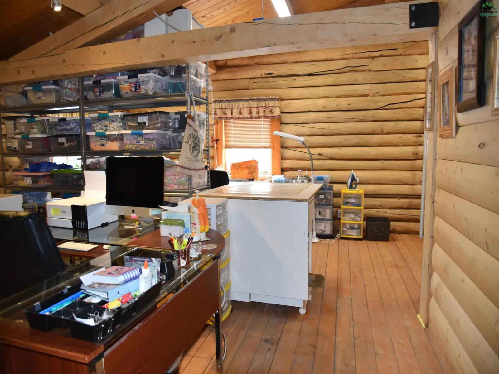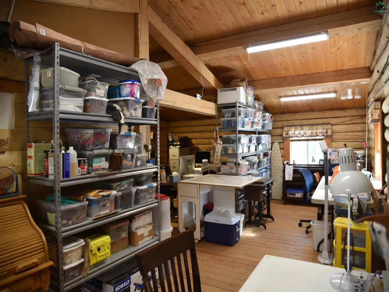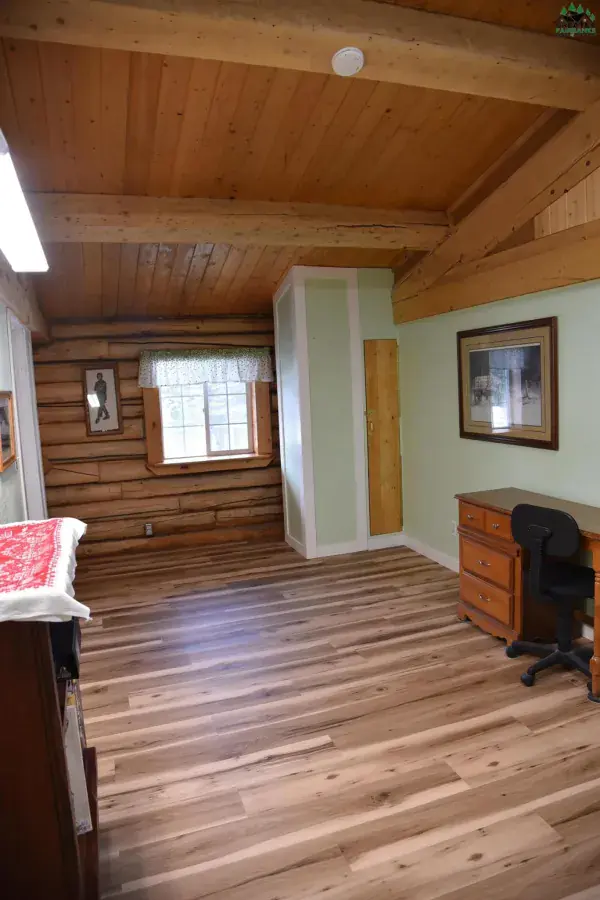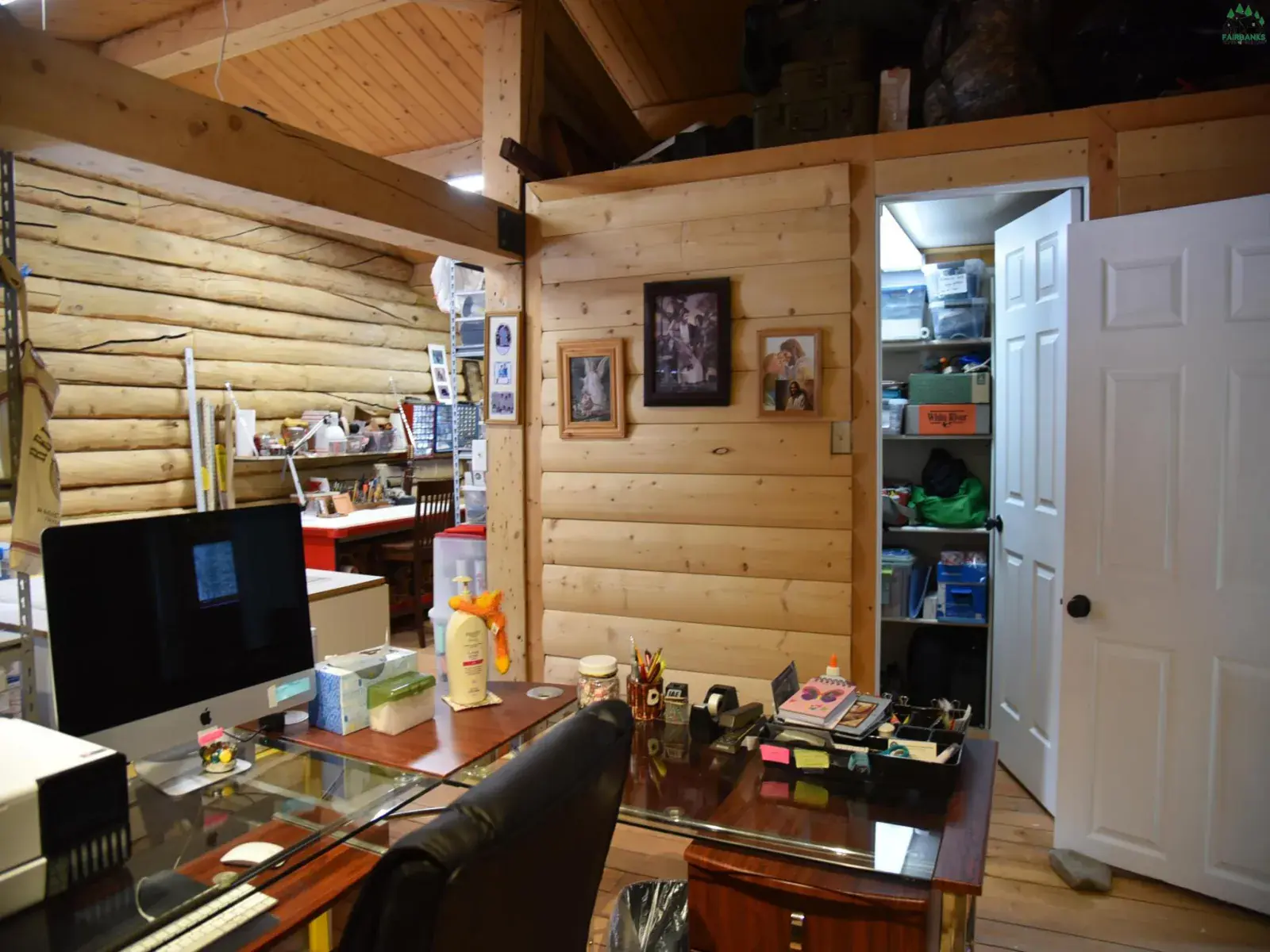 Spacious 2-story log home on 6+ acres in Tok, Alaska, designed for comfort with a cozy, rustic charm. The first floor features a country kitchen, dining area, and a living room with a Blaze King woodstove, along with a large bedroom. Upstairs, you’ll find three bedrooms, including a master suite currently used as a craft and sewing room, a practical office, and a central landing that serves as a flexible space for activities, connecting all the rooms. The property includes a detached garage, heated workshop, an open shed suitable for RV storage or building materials, and a woodshed that holds up to 14 cords. Experience the perfect blend of space and warmth in this inviting home.