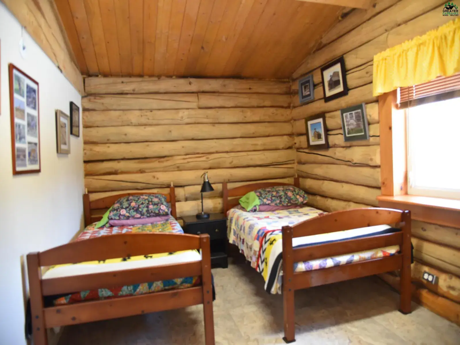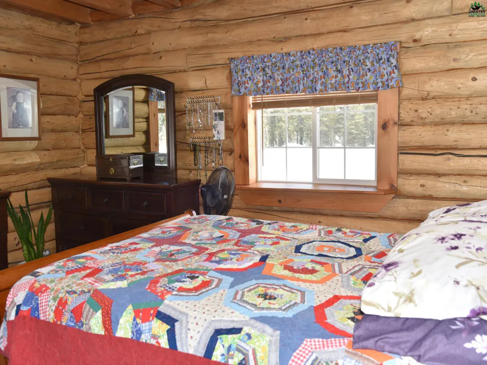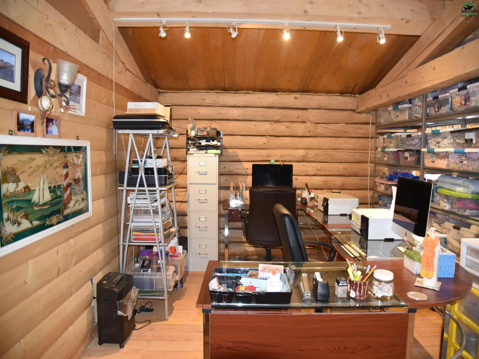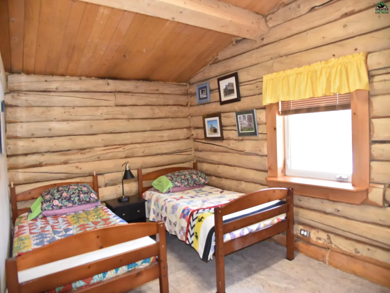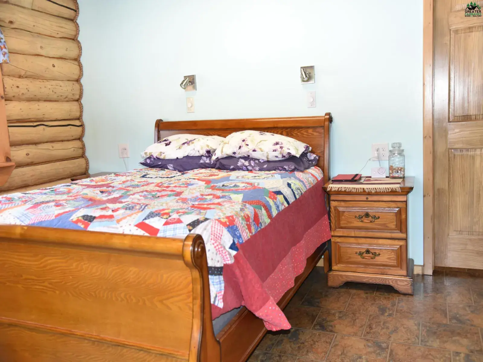 Spacious 2-story log home on 6+ acres in Tok, Alaska, designed for comfort with a cozy, rustic charm. The first floor features a country kitchen, dining area, and a living room with a Blaze King woodstove, along with a large bedroom. Upstairs, you’ll find three bedrooms, including a master suite currently used as a craft and sewing room, a practical office, and a central landing that serves as a flexible space for activities, connecting all the rooms. The property includes a detached garage, heated workshop, an open shed suitable for RV storage or building materials, and a woodshed that holds up to 14 cords. Experience the perfect blend of space and warmth in this inviting home.
