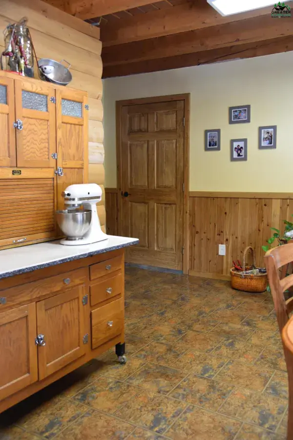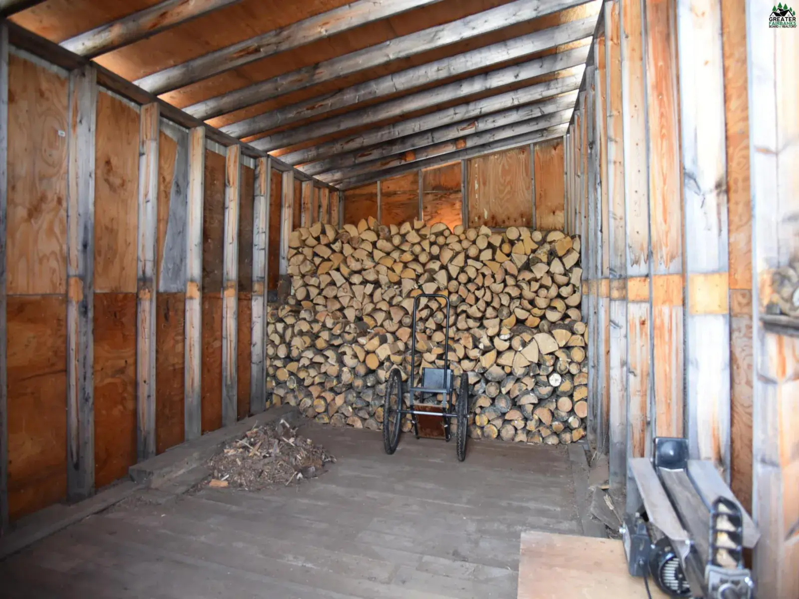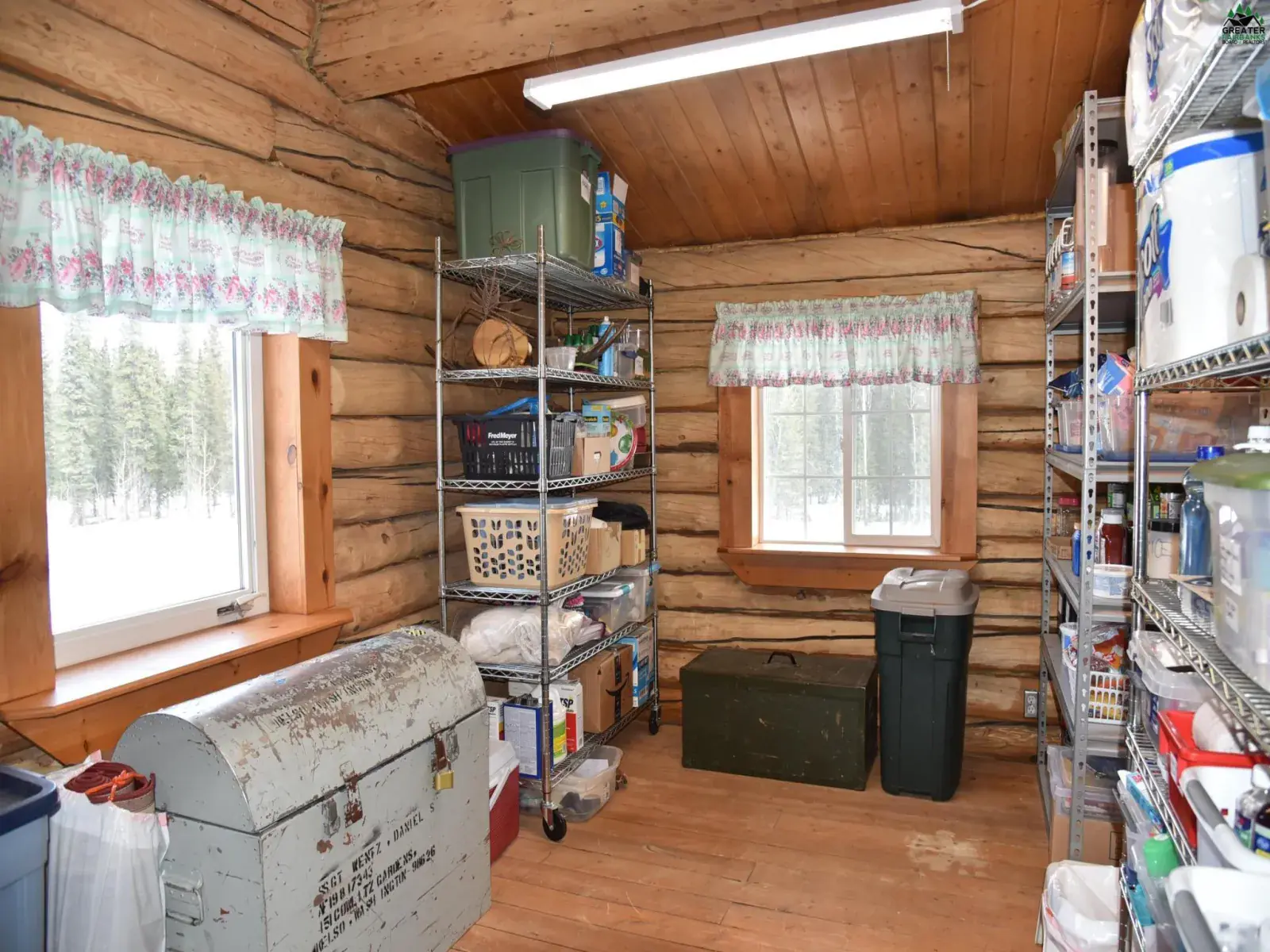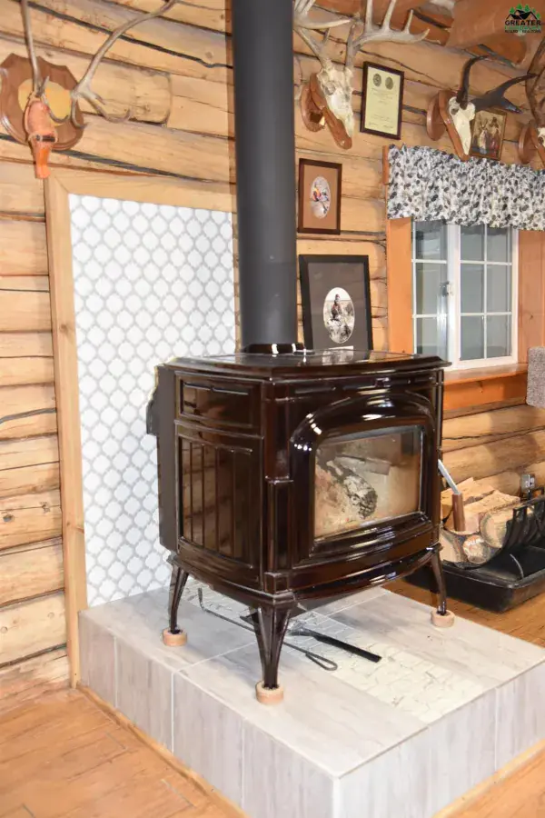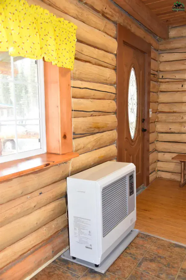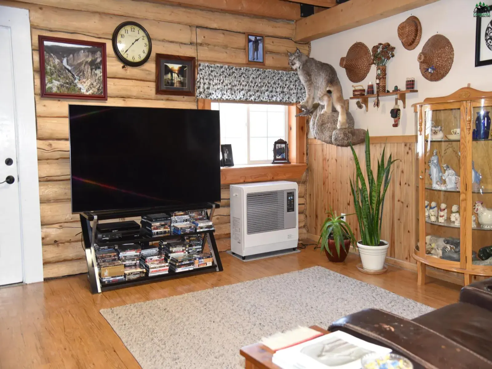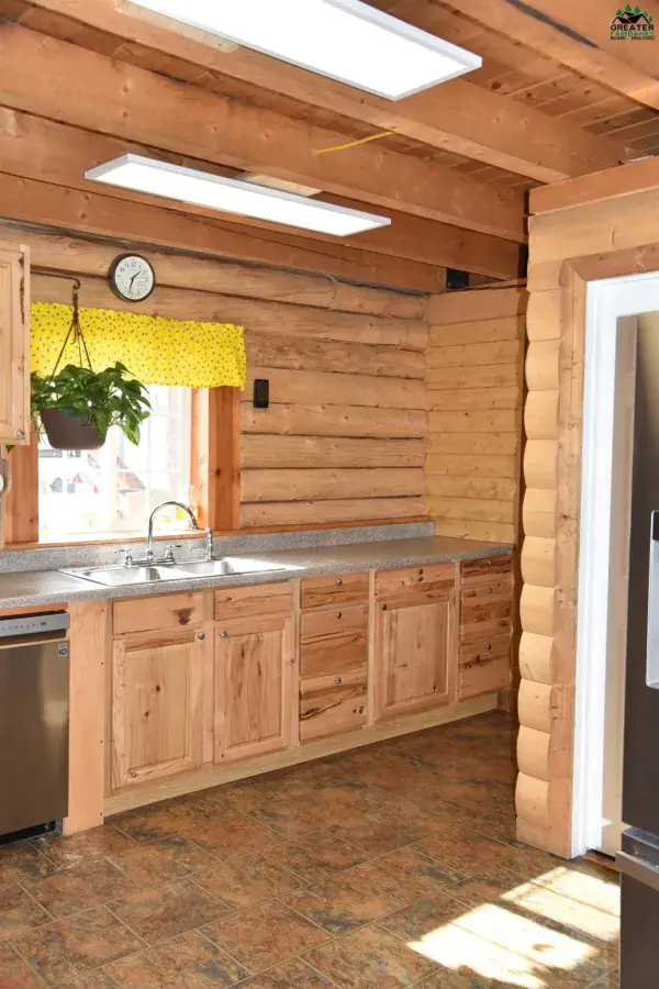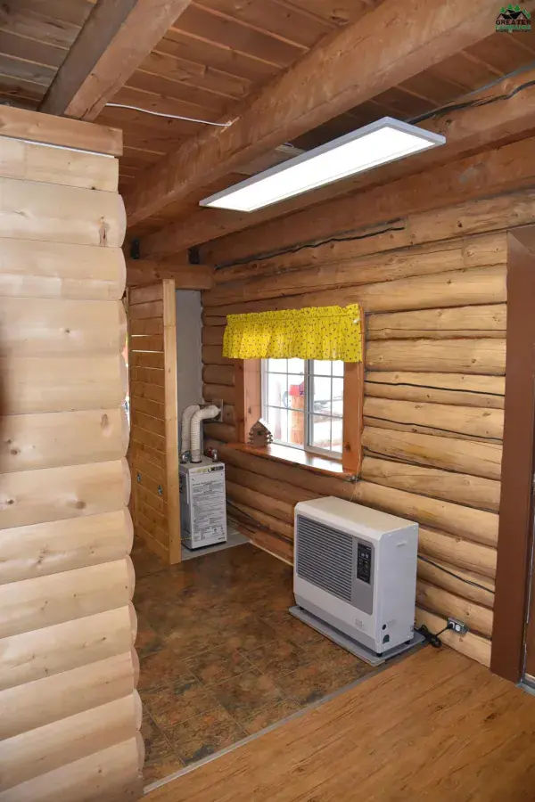Spacious 2-story log home on 6+ acres in Tok, Alaska, designed for comfort with a cozy, rustic charm. The first floor features a country kitchen, dining area, and a living room with a Blaze King woodstove, along with a large bedroom. Upstairs, you’ll find three bedrooms, including a master suite currently used as a craft and sewing room, a practical office, and a central landing that serves as a flexible space for activities, connecting all the rooms. The property includes a detached garage, heated workshop, an open shed suitable for RV storage or building materials, and a woodshed that holds up to 14 cords. Experience the perfect blend of space and warmth in this inviting home.