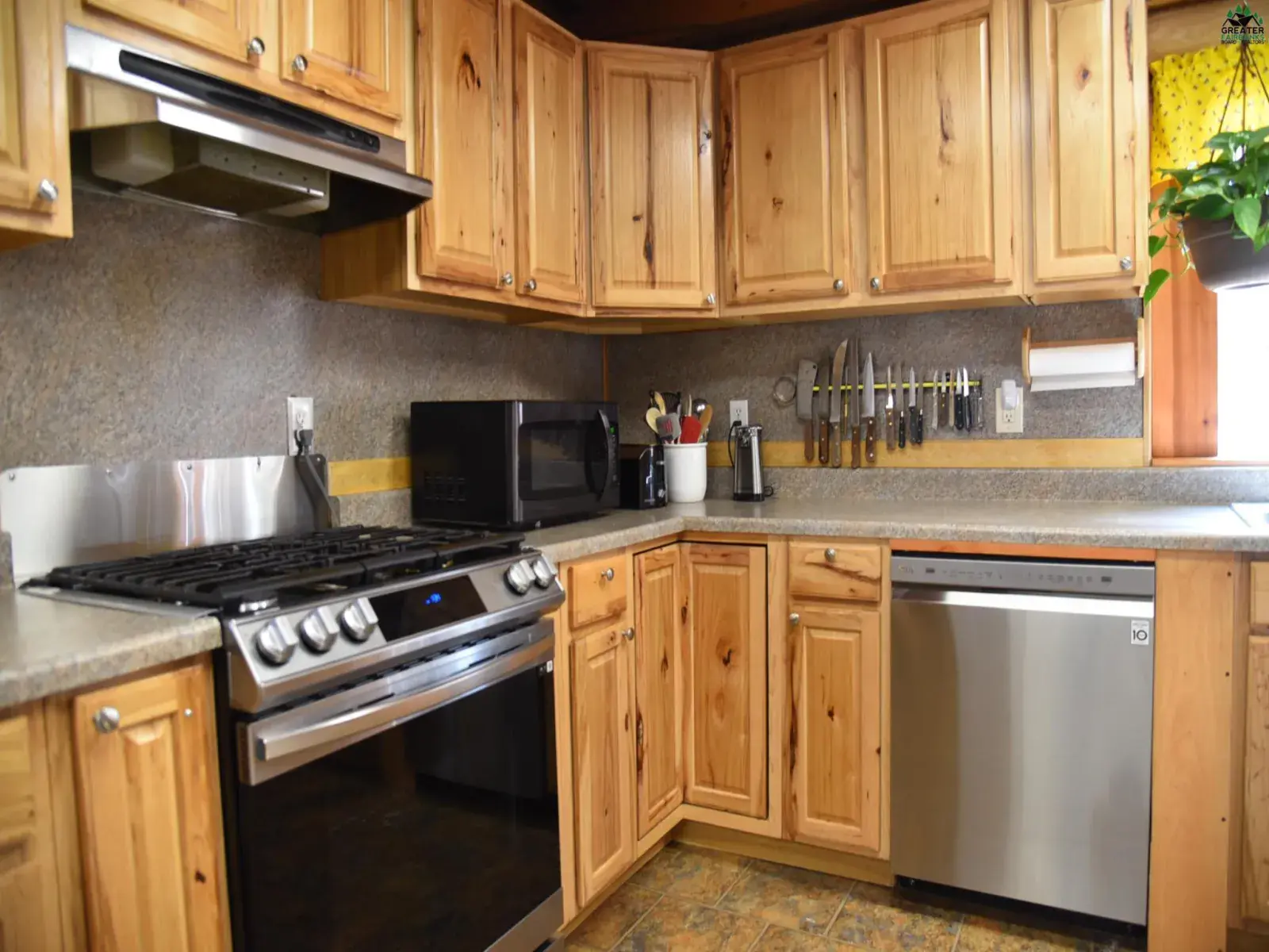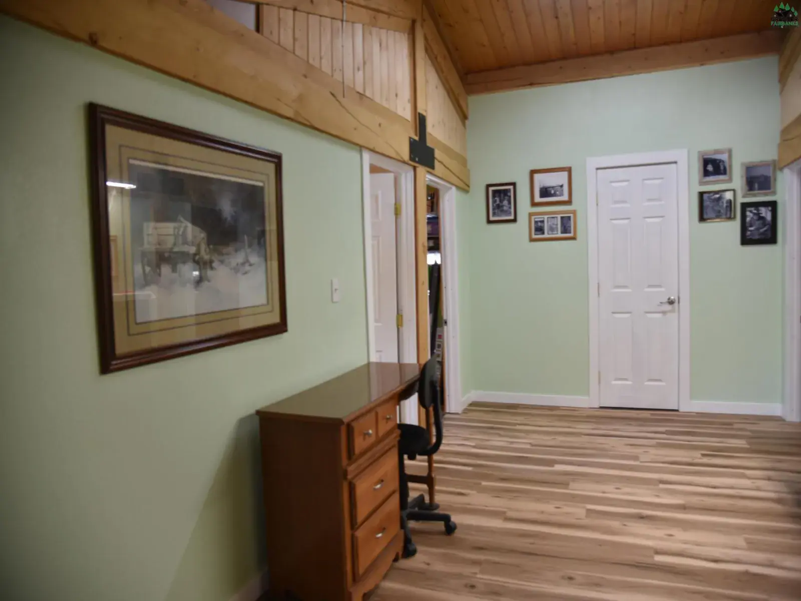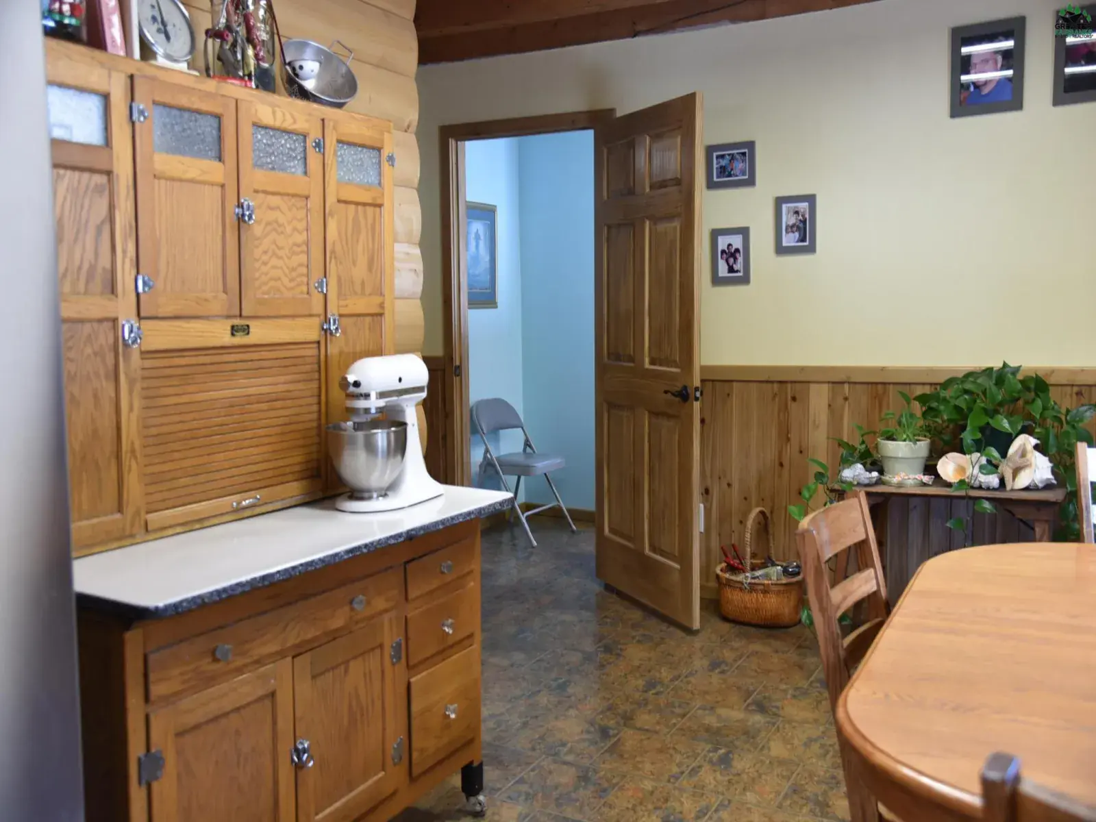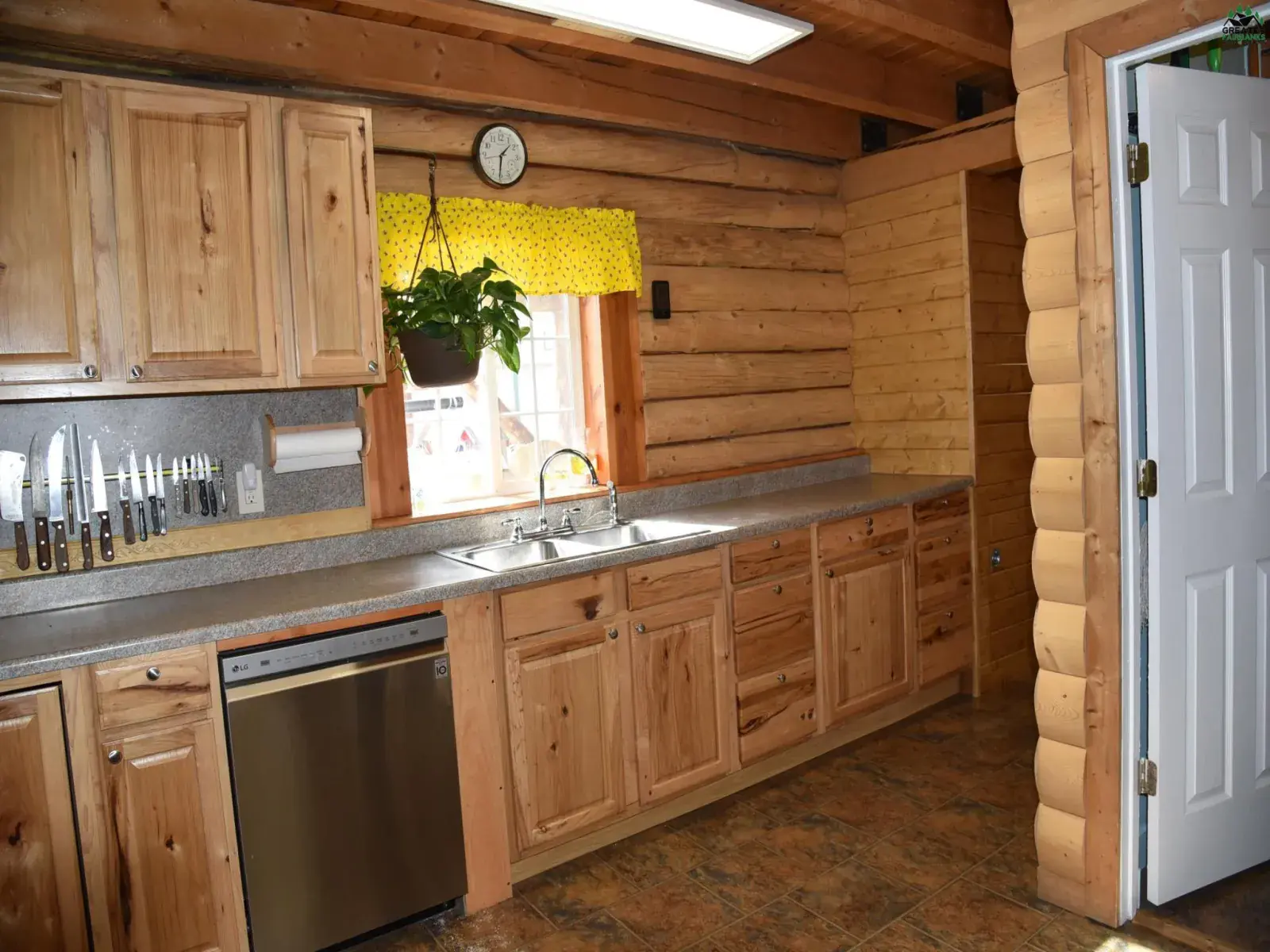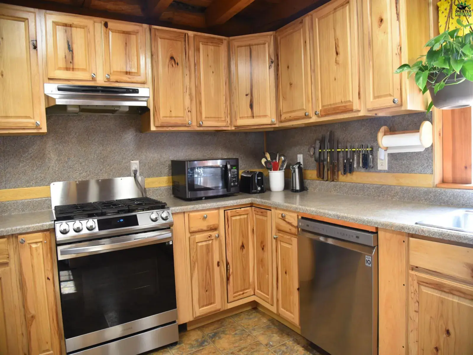 Spacious 2-story log home on 6+ acres in Tok, Alaska, designed for comfort with a cozy, rustic charm. The first floor features a country kitchen, dining area, and a living room with a Blaze King woodstove, along with a large bedroom. Upstairs, you’ll find three bedrooms, including a master suite currently used as a craft and sewing room, a practical office, and a central landing that serves as a flexible space for activities, connecting all the rooms. The property includes a detached garage, heated workshop, an open shed suitable for RV storage or building materials, and a woodshed that holds up to 14 cords. Experience the perfect blend of space and warmth in this inviting home.