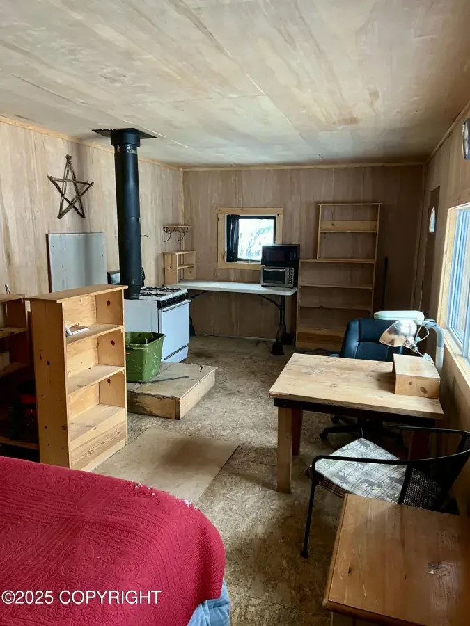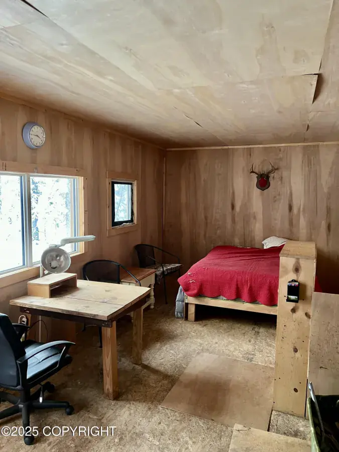 Enjoy peace and privacy in this well-kept 12×24 cabin on 5 acres. Electricity is nearby–about 500 yards–and the property already has a barrel set for an outhouse, making it a great start for your Alaskan getaway.