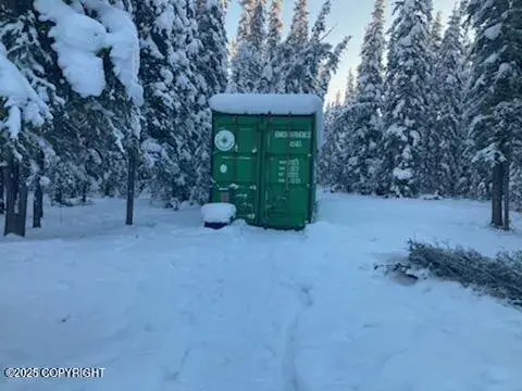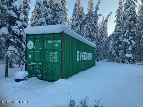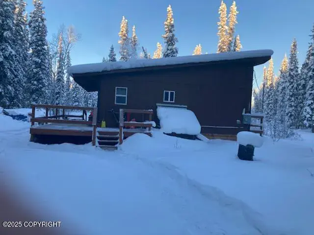 Cabin in the woods! Live the Alaska dream in this well built 2 bedroom, 1 bath cabin on 11.94 acres just 3 miles from the center of Tok. Spacious living room/kitchen. Wood stove and Toyo stove heat, electric, well and septic. Large back deck for grilling out or just enjoying the beautiful summer or aurora borealis!!, 45′ Connex with ramp on pilings. No property taxes!!