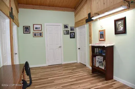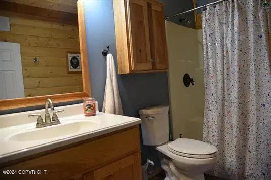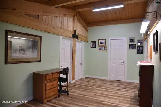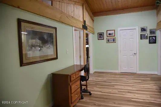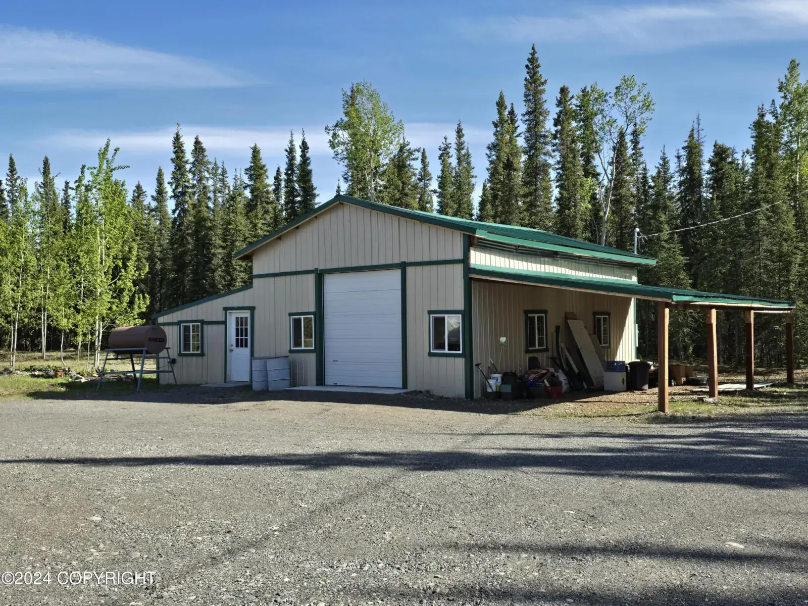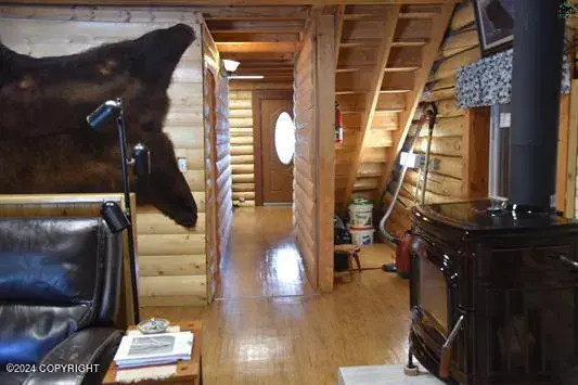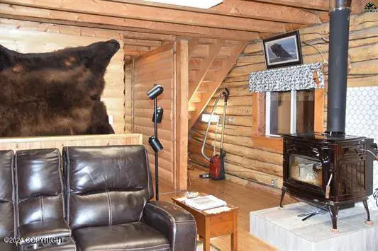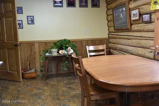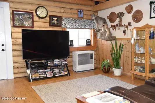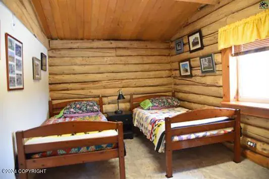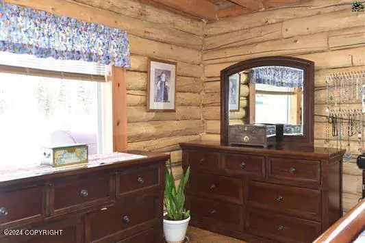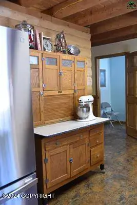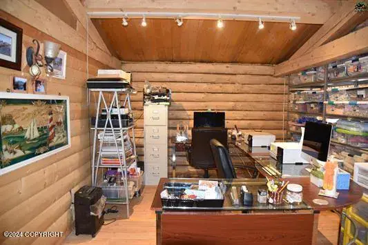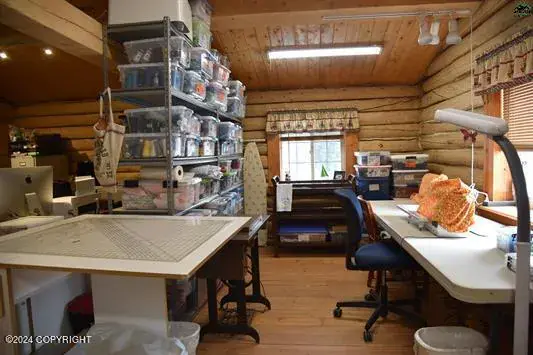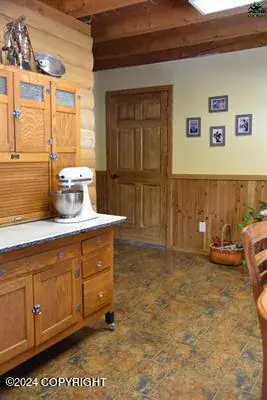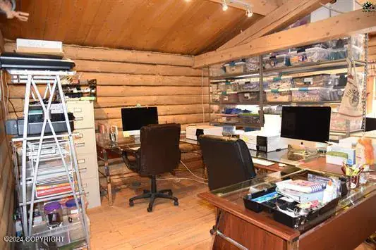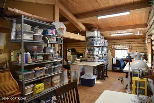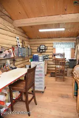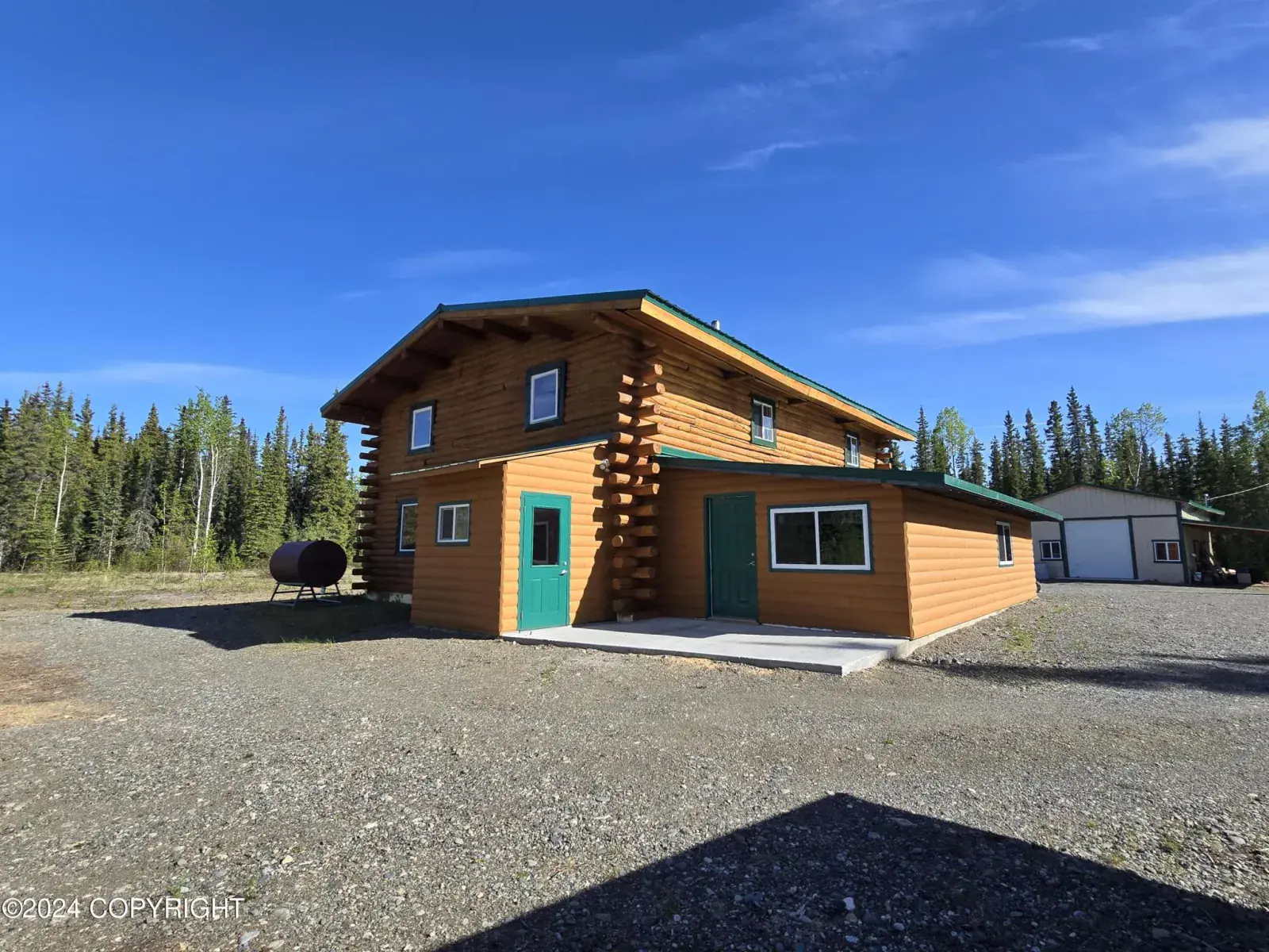 Spacious 2-story log home on 6+ acres in Tok, Alaska, designed for comfort with a cozy, rustic charm. The first floor features a country kitchen, dining area, and a living room with a Blaze King woodstove, along with a large bedroom. Upstairs, you’ll find three bedrooms, including a master suite currently used as a craft and sewing room, a practical office.There is a spacious central landing upstairs that serves as a flexible space for activities, connecting all the rooms. The property includes a detached garage, heated workshop, an open shed suitable for RV storage or building materials, and a woodshed that holds up to 14 cords. Many recent upgrades from 2022 – 2024: