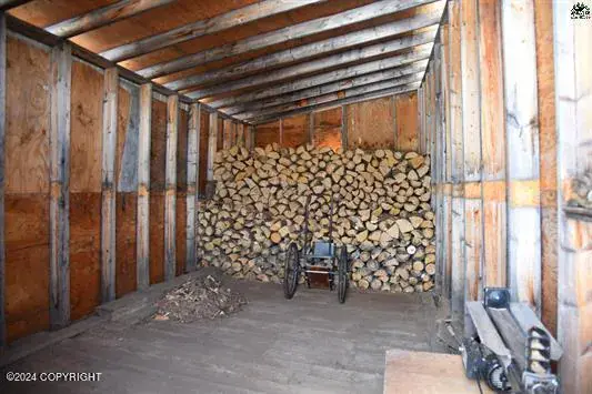 Woodshed is 12’x24′ and can store approximately 14 cord. There is also a 12’x24 lean-to attached to the woodshed. Remaining firewood and fuel oil negotiable.